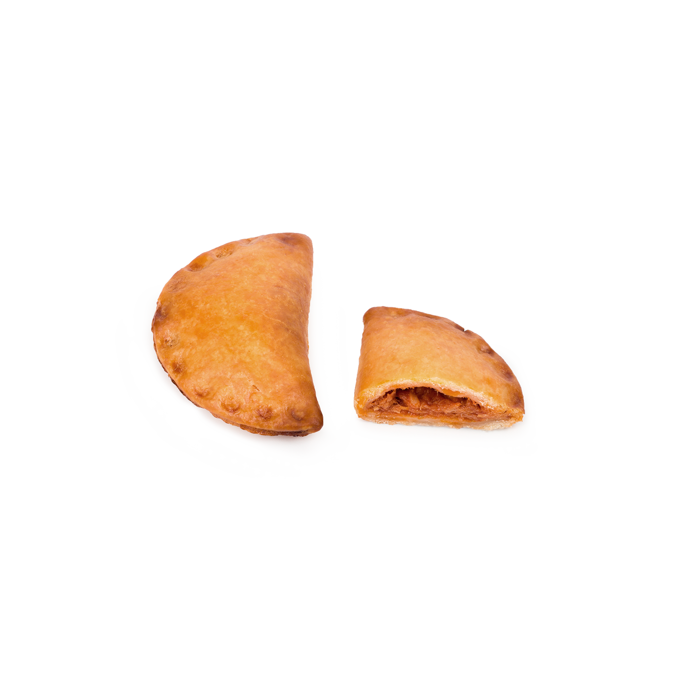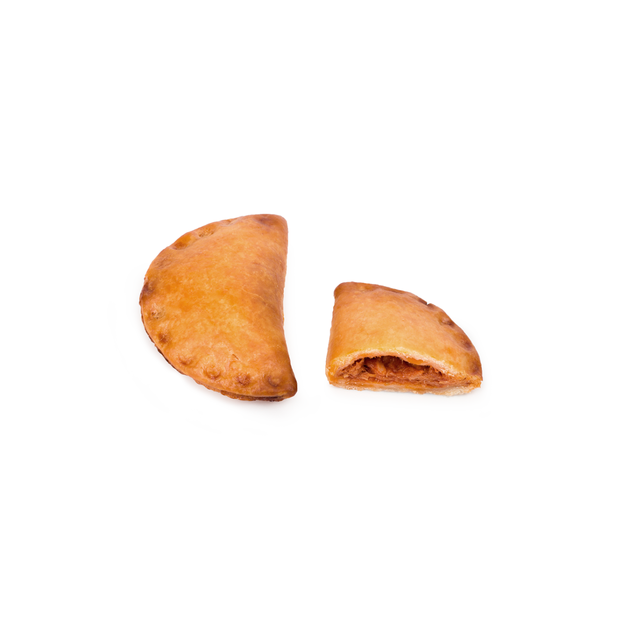 La Empanadilla Selecta de Pisto está rellena de tomate frito y atún. De masa escaldada fina y crujiente. Pintada con huevo. 34% de relleno.