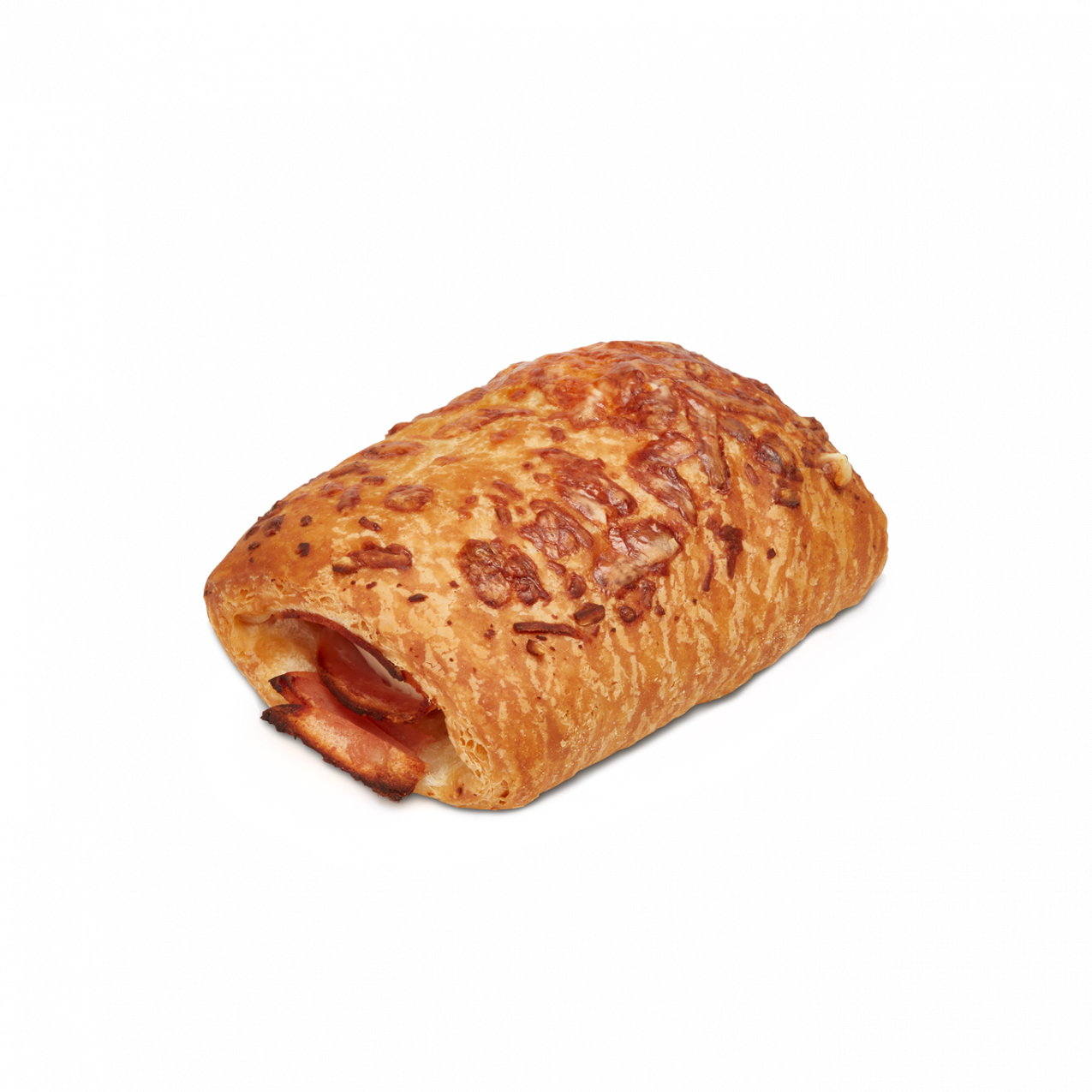 Viene pintada con huevo y decorada con queso gouda rayado que queda crujiente tras el horneado.