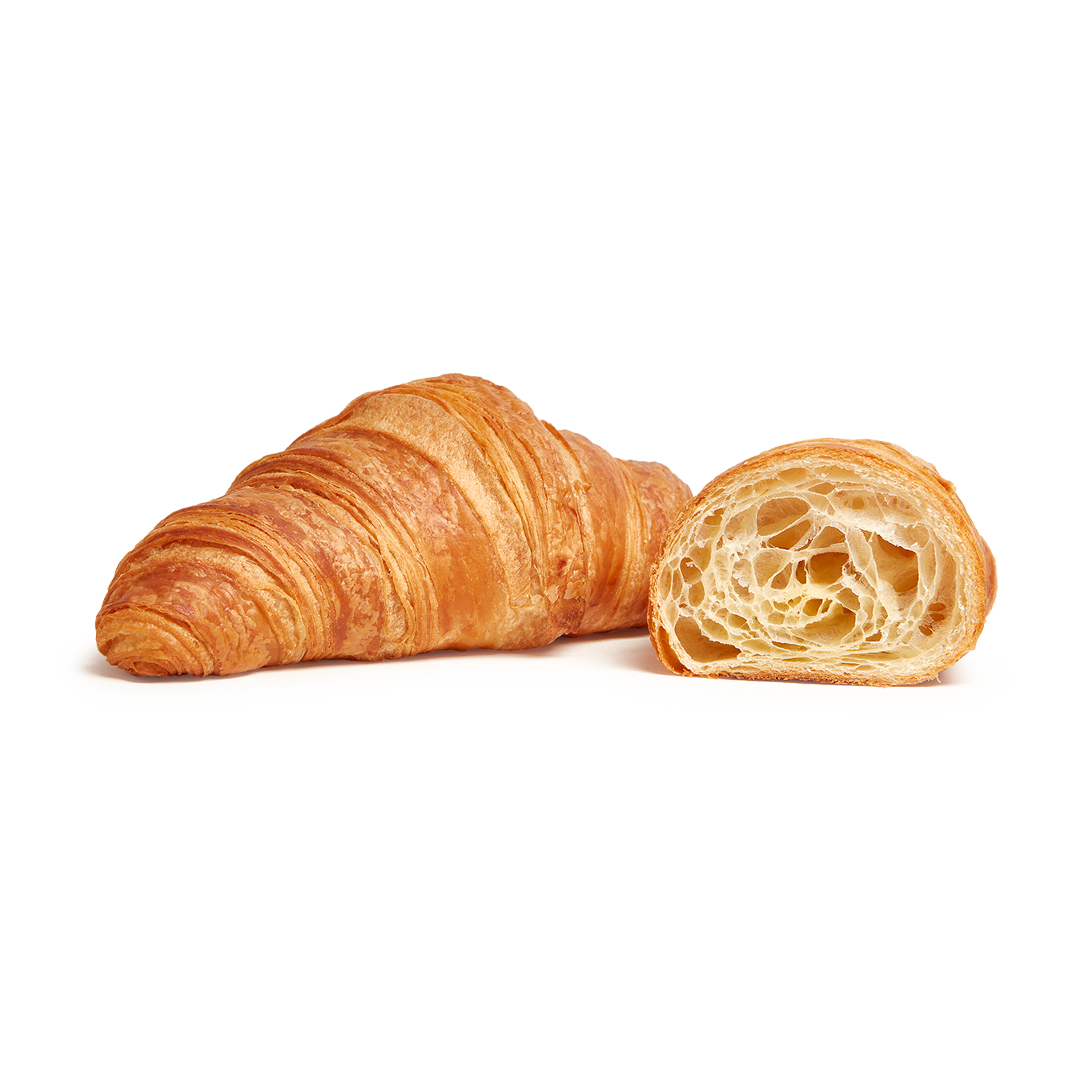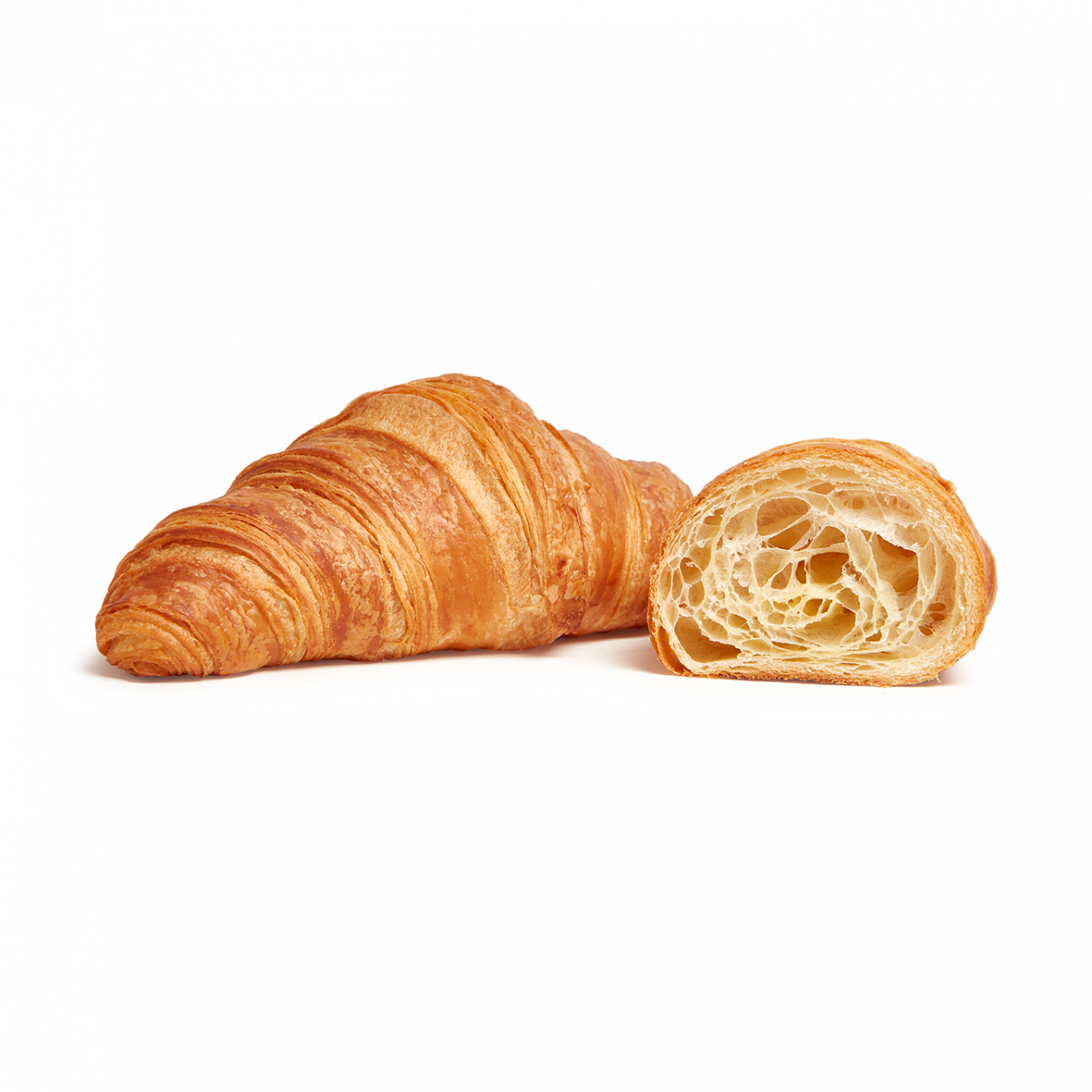 La perfecta armonía entre su textura hojaldrada y un suave sabor a mantequilla (24%) que le dan un aroma y color característicos. Ya fermentado y pintado con huevo.