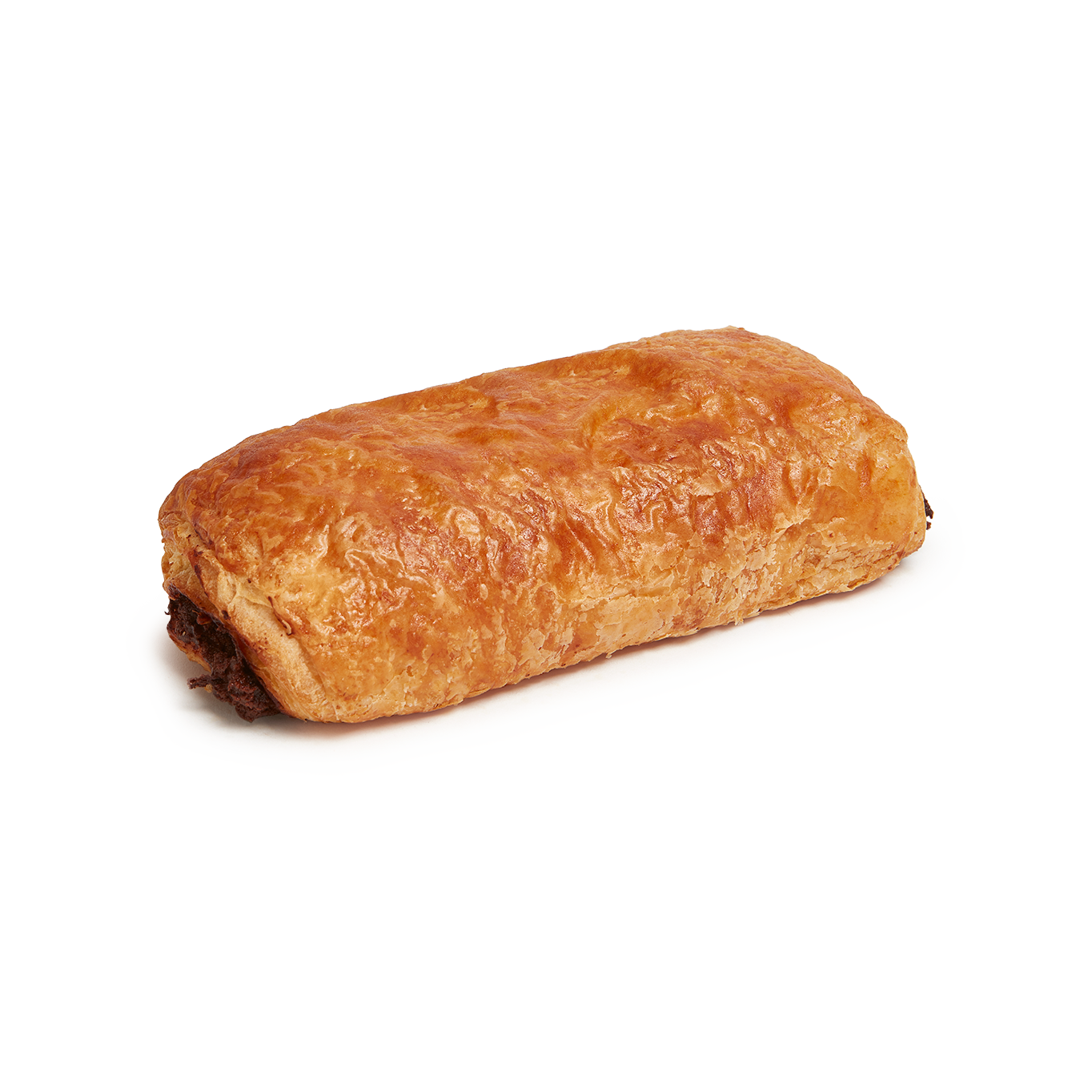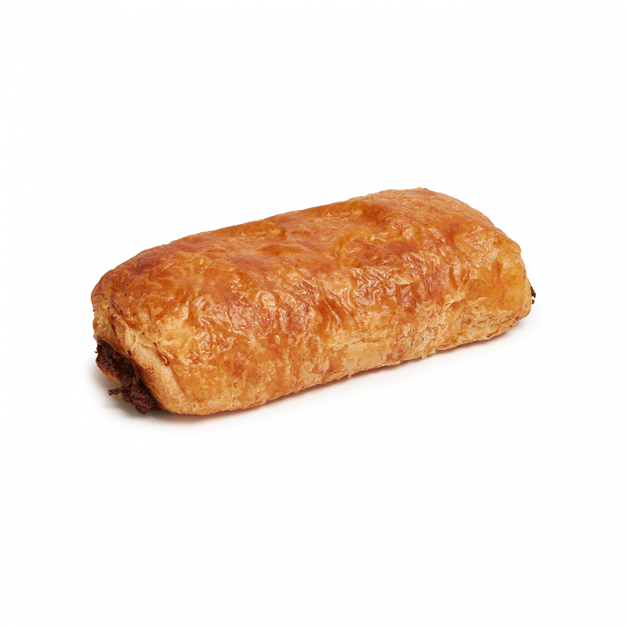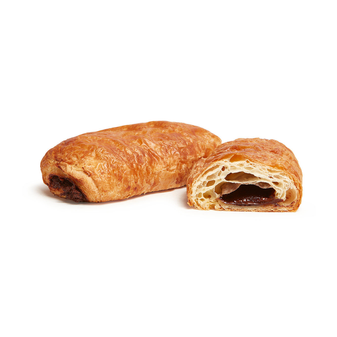 Deliciosa napolitana de masa hojaldrada, rellena de crema de chocolate (23%) con avellanas. Muy fácil y rápida de preparar, ya fermentada.
