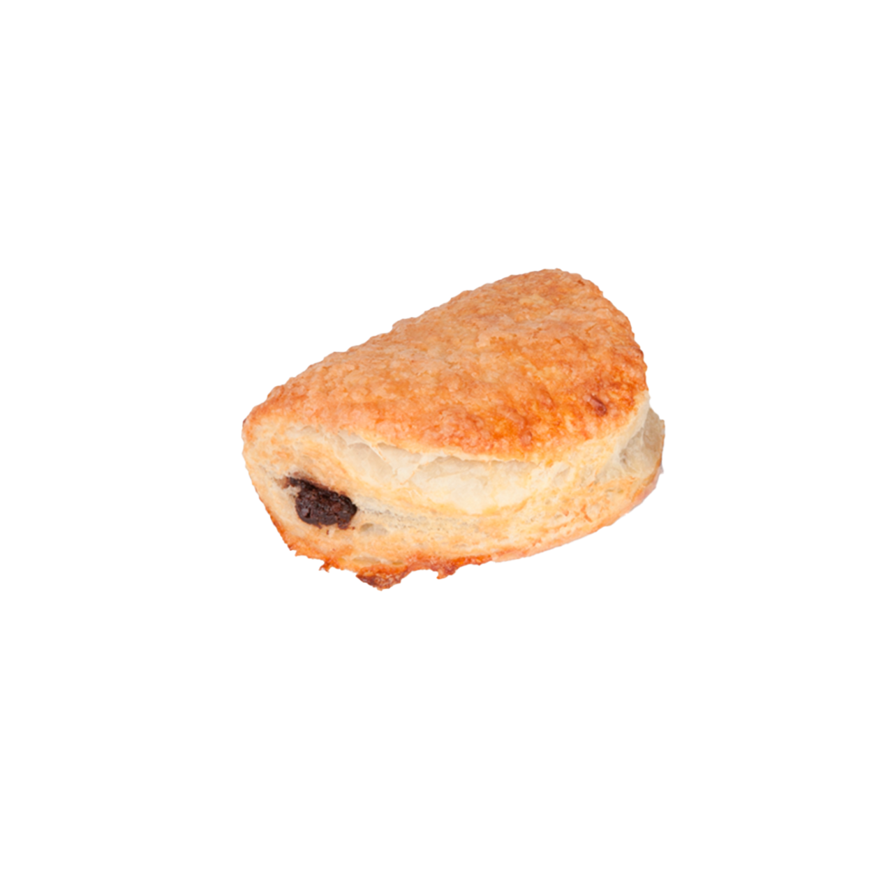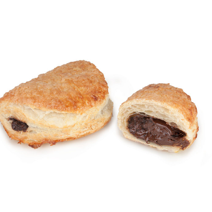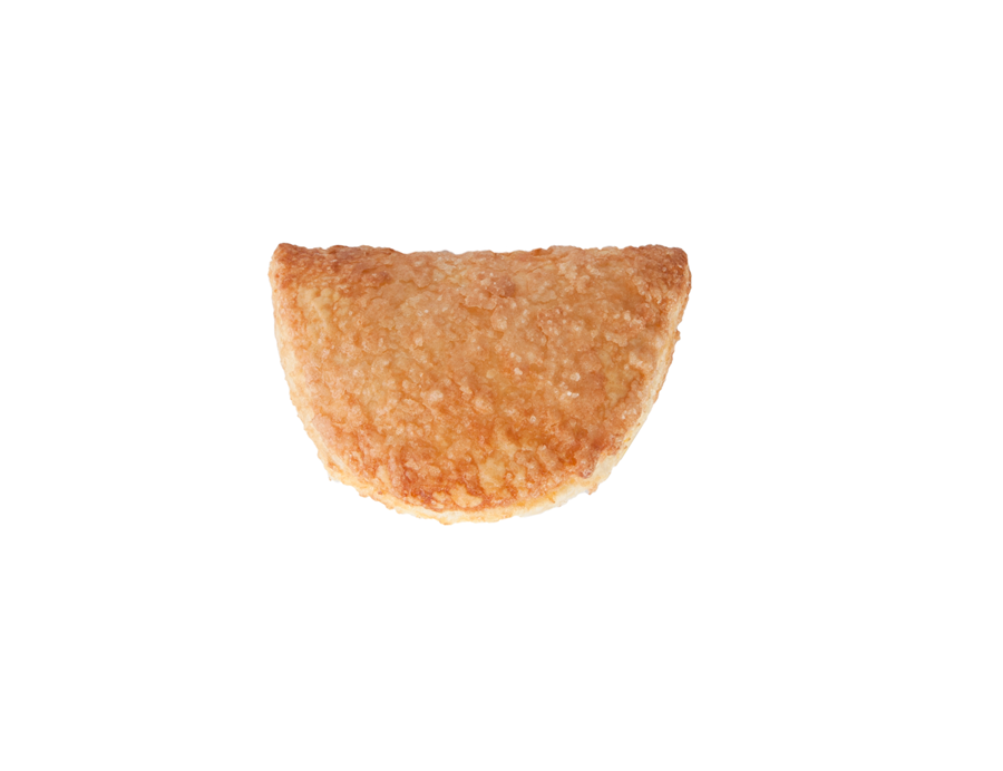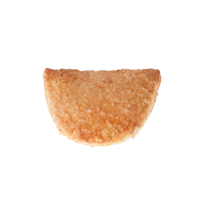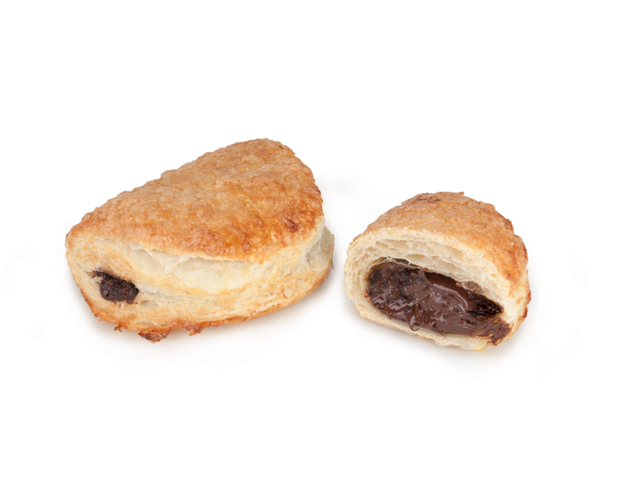 El bocado es una auténtica explosión por su relleno, el tacto es rugoso, el aroma azucarado, el visual enamora a primera vista y el oído percibe su crujencia al instante; placer para los cinco sentidos. Hojaldre en formato empanadilla, relleno de chocolate con un toque de leche (32%) y recubierto por una generosa capa de azúcar. ¿El resultado tras el horneado? Crujiente y deliciosa explosión con azúcar caramelizada en su superficie que se comen sin pestañear.