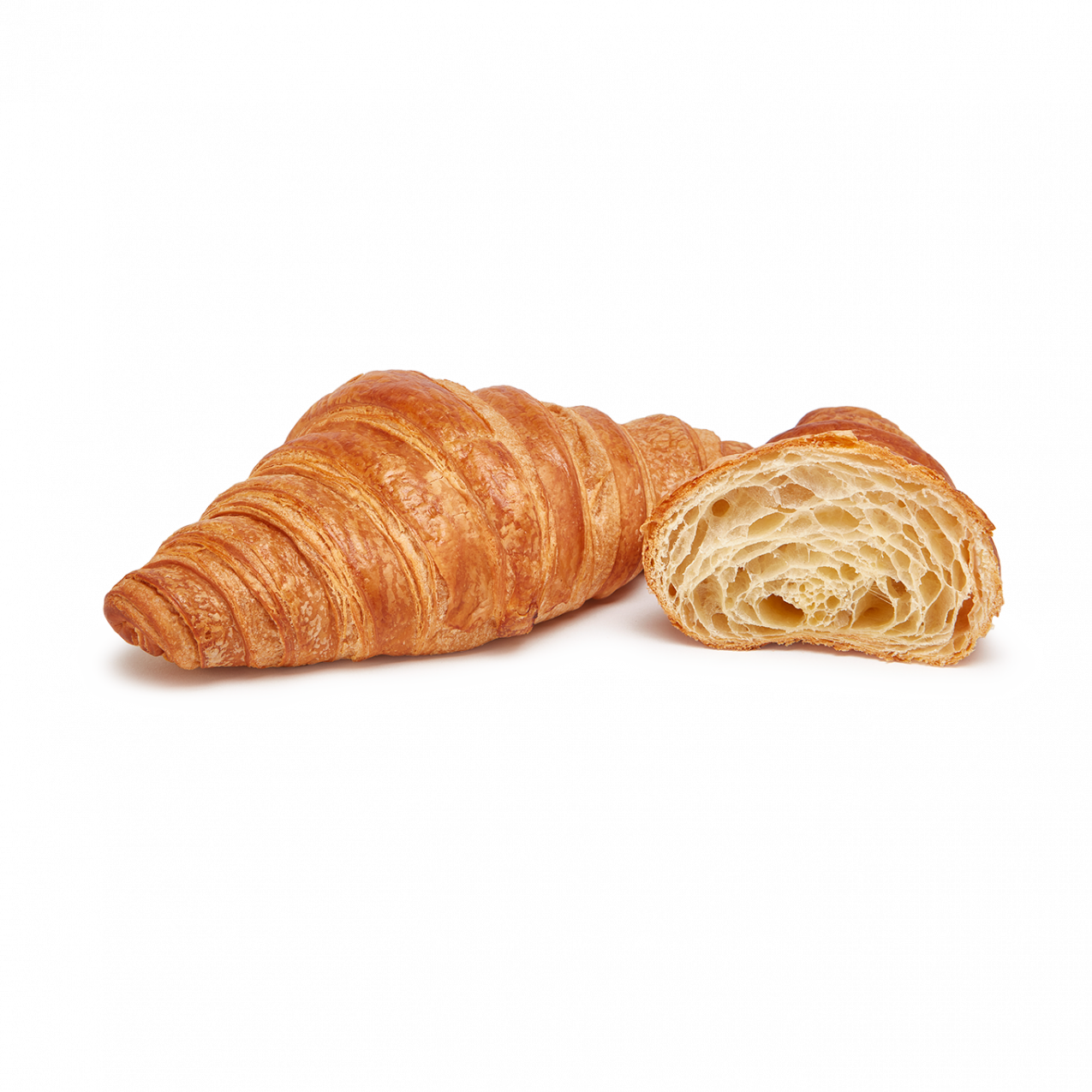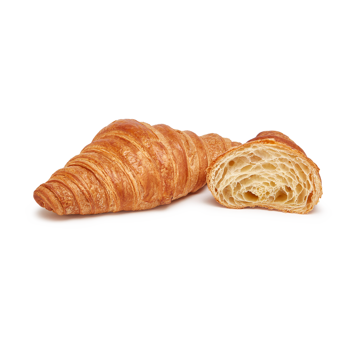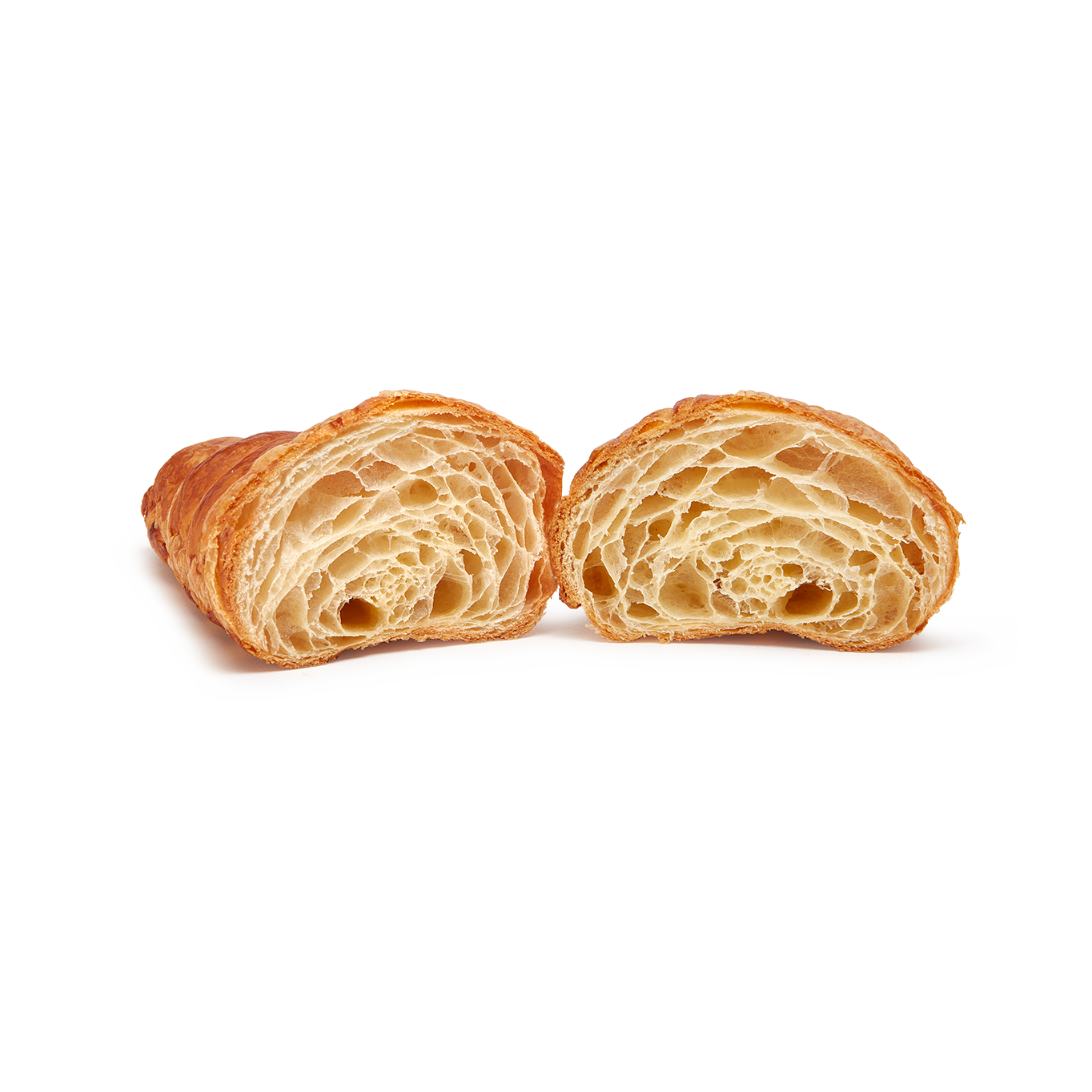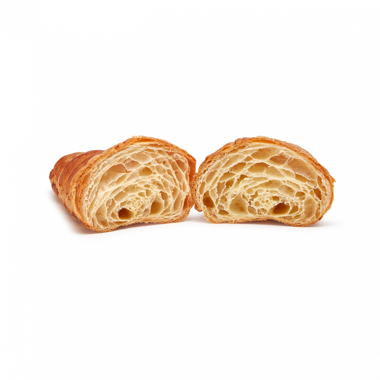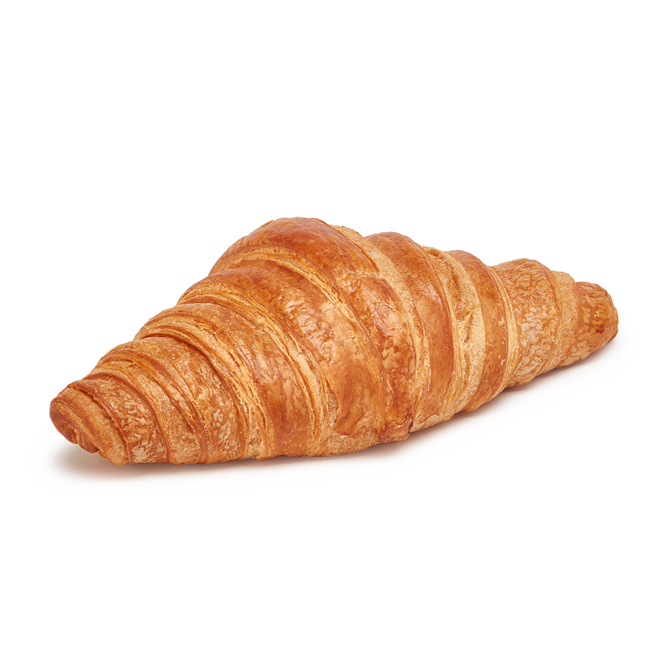 Delicioso croissant de formato recto elaborado con margarina, con un tamaño extra ideal para rellenar tanto con rellenos dulces como salados.