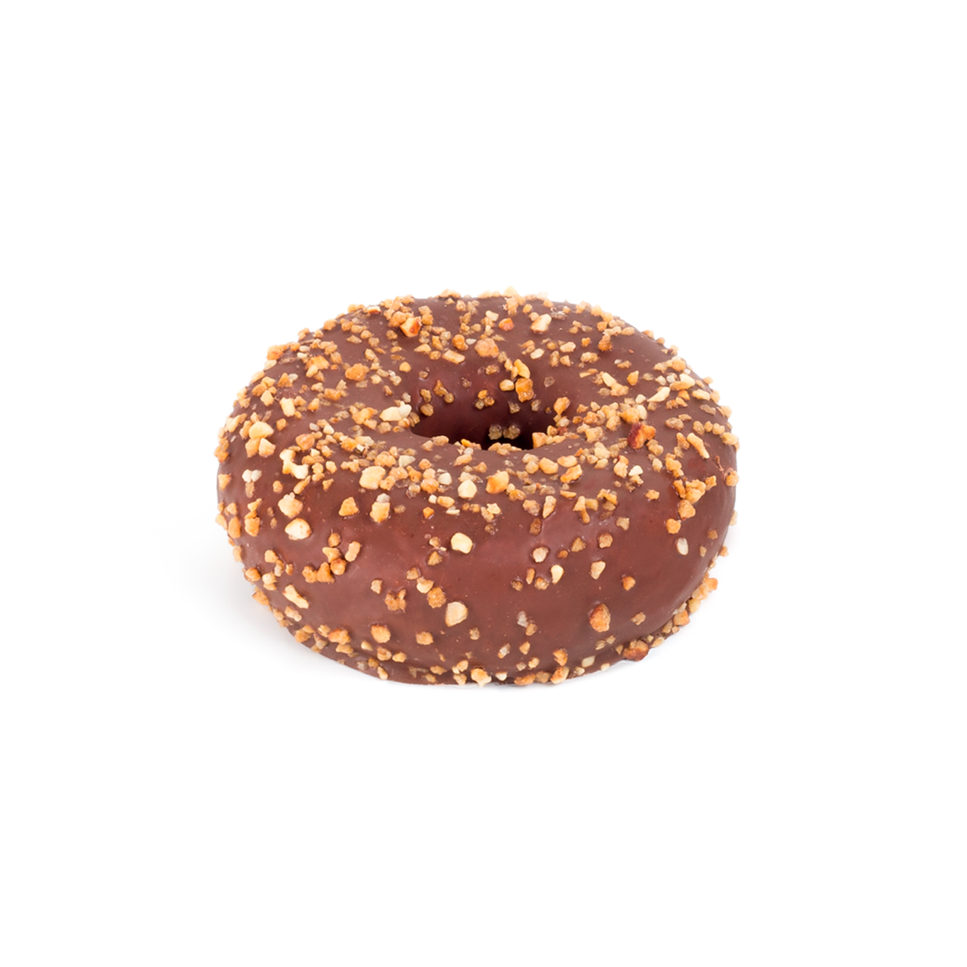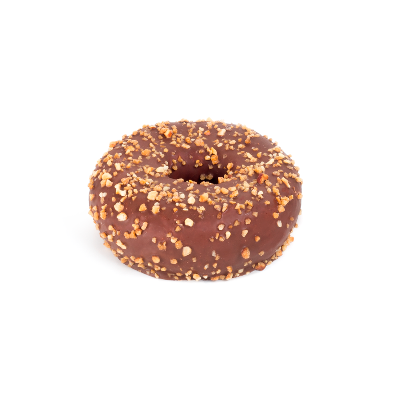 Una explosión de sabor en cada bocado, decorado con una capa de crujiente bombón y una fina capa de trocitos de avellana envueltos en deliciosas gotas de azúcar. Masa tierna y deliciosa elaborada al más puro estilo americano.