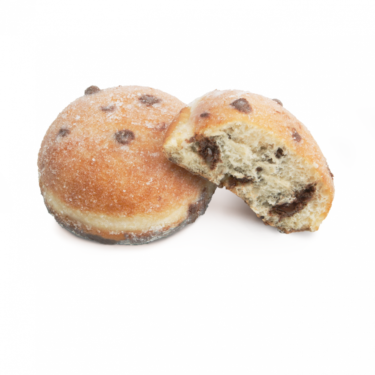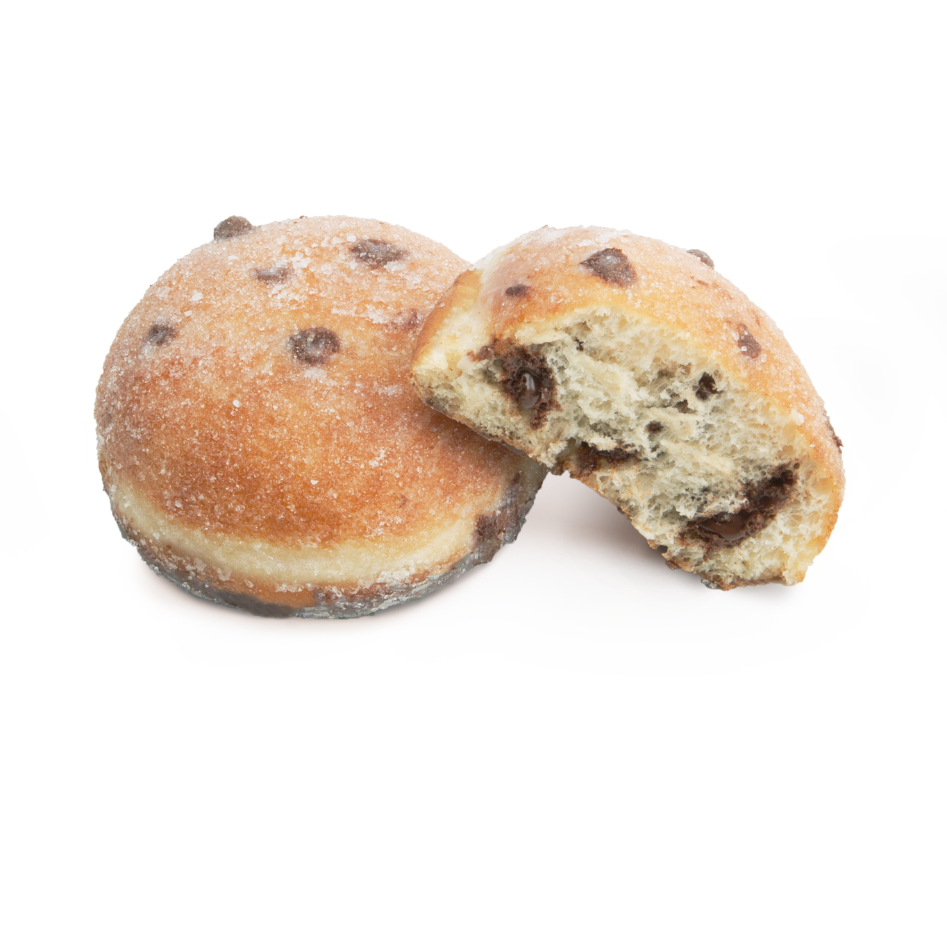 Berlina azucarada en versión chocolate, rellena de crema de chocolate con avellana y con un baño en la base de chocolate con leche. Su cobertura azucarada añade un extra crujiente de azúcar en grano. 25% de relleno.