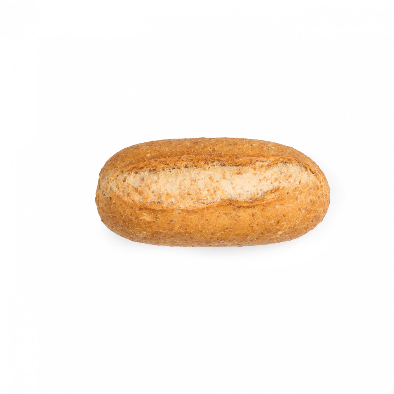 Panecillo elaborado con un 25% de harina ntegral de trigo. Su formato es ideal para acompañar los menús de aquellos que buscan un pan de sabor suave con un mayor aporte de fibra. Ideal también para preparar montaditos saludables.
