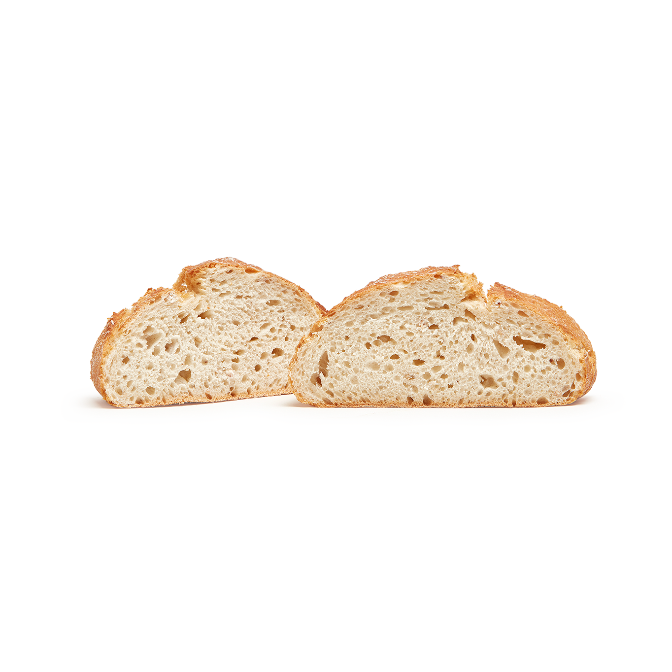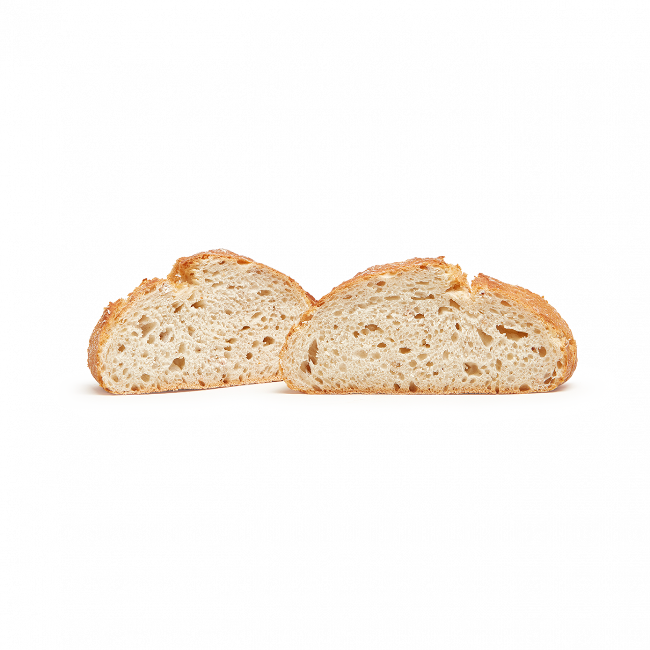 Panes de suela plana cocidos en los tradicionales Hornos de Suela de Piedra. La elevada y constante temperatura de este tipo de cocción dota al pan de una corteza rústica muy crujiente y una miga muy alveolada, consiguiendo una mayor durabilidad.