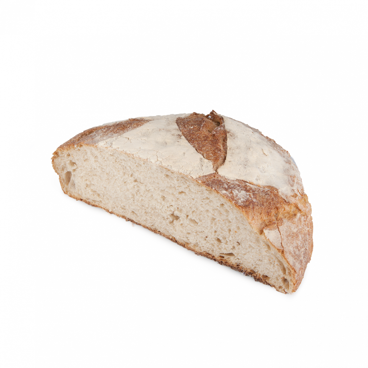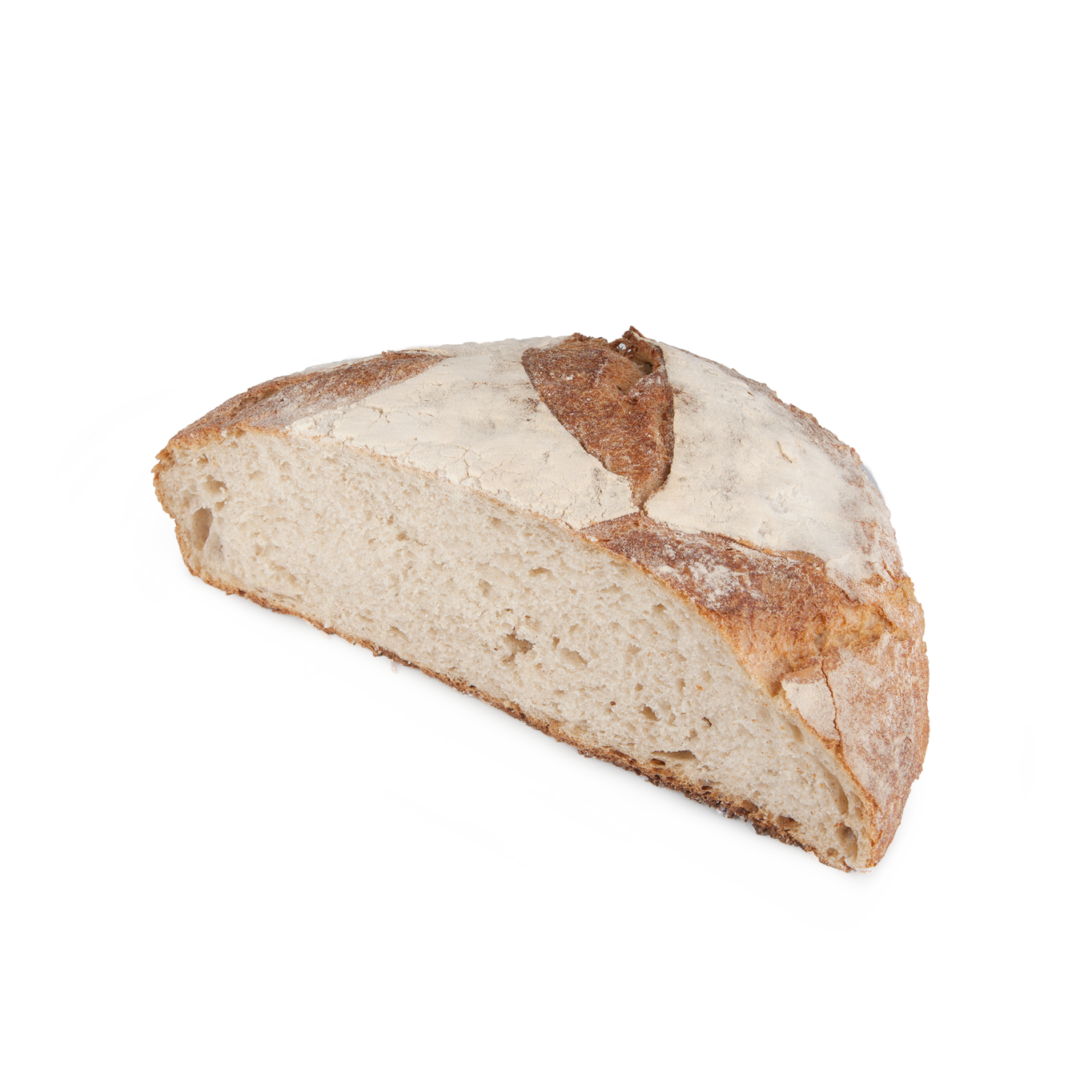 Hogaza premium de elaboración artesanal, con ingredientes 100% naturales, masa madre exclusiva, largos tiempos de reposo y cocidas en horno de suela de piedra. además el proceso de molienda artesanal de la harina, lento y cuidadoso, preserva el contenido y estabilidad de sus minerales, vitaminas y proteínas. Esta hogaza está elaborada con las mejores variedades de trigo.