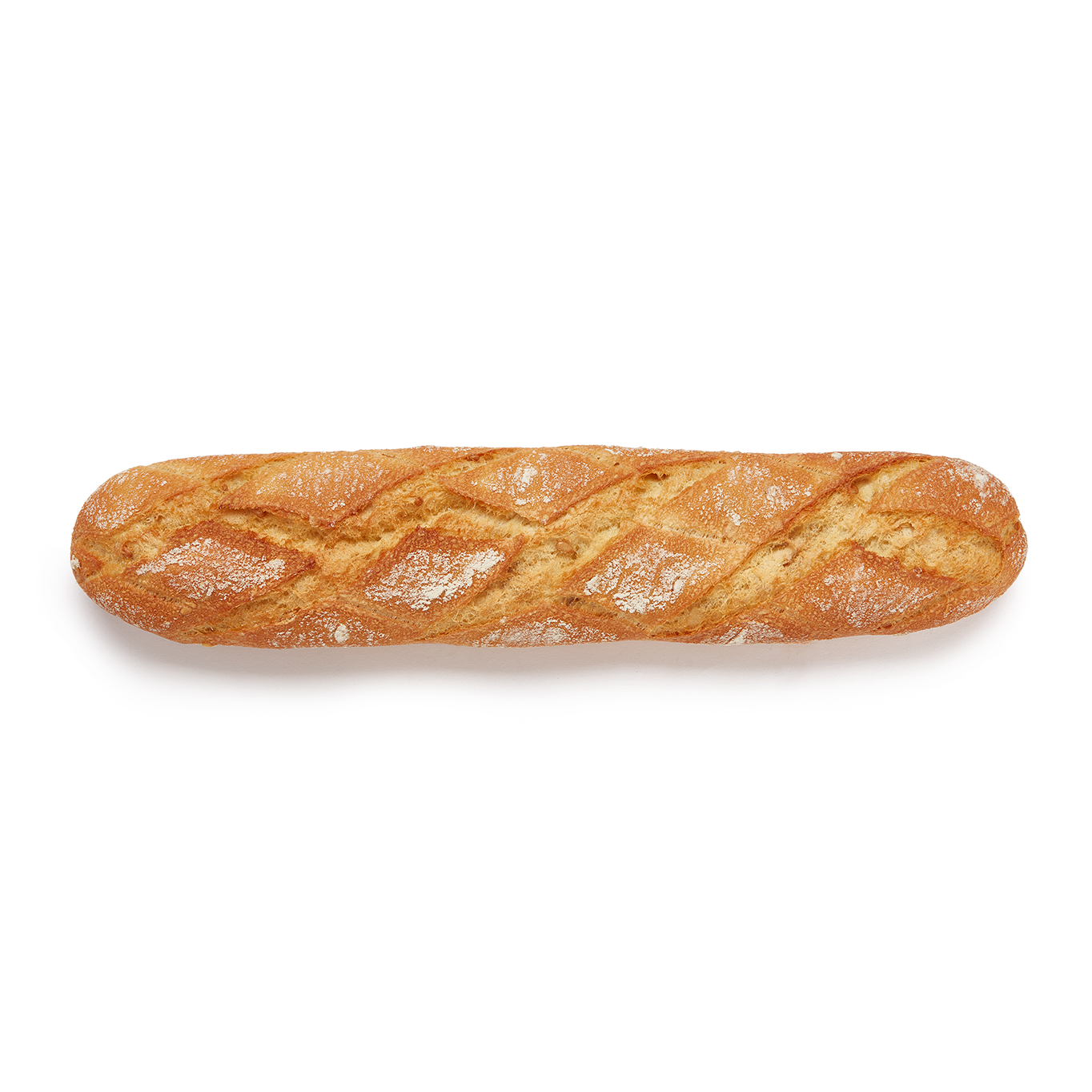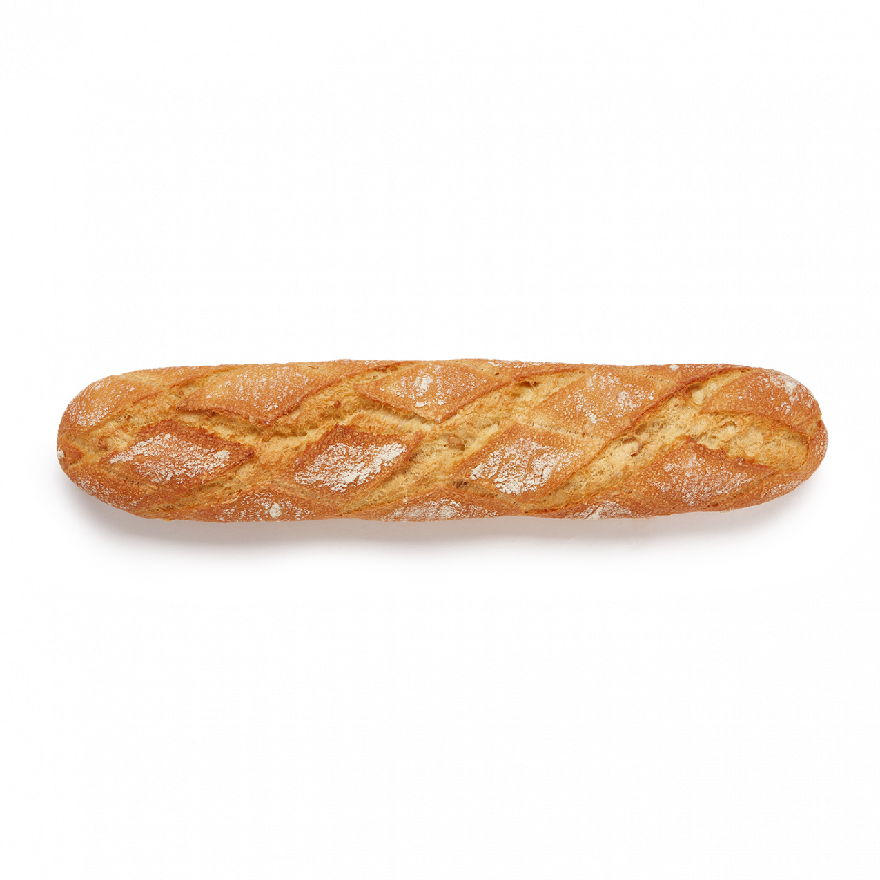 Pan Rústico elaborado con Harina de Maíz y Pipas de Girasol. Destaca por su gran sabor y por su corteza dorada y crujiente. Posee un atractivo aspecto por sus especiales cortes en forma de rombo y su corteza enharinada. En el interior sorprende una miga de gran alveolo de tono amarillo y una textura suave e hidratada. Además por su proceso de elaboración se trata de un pan de alta durabilidad.