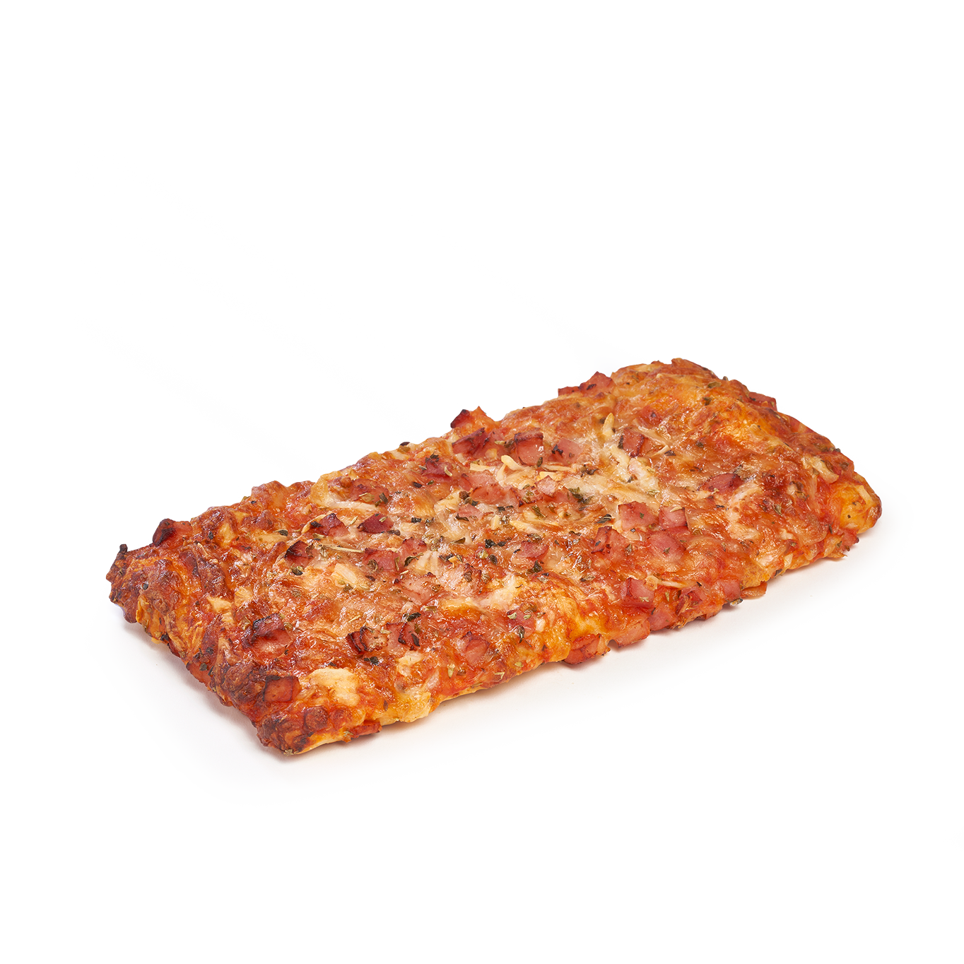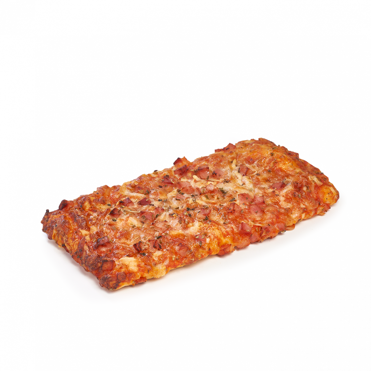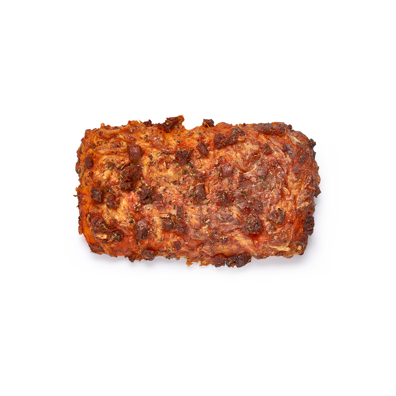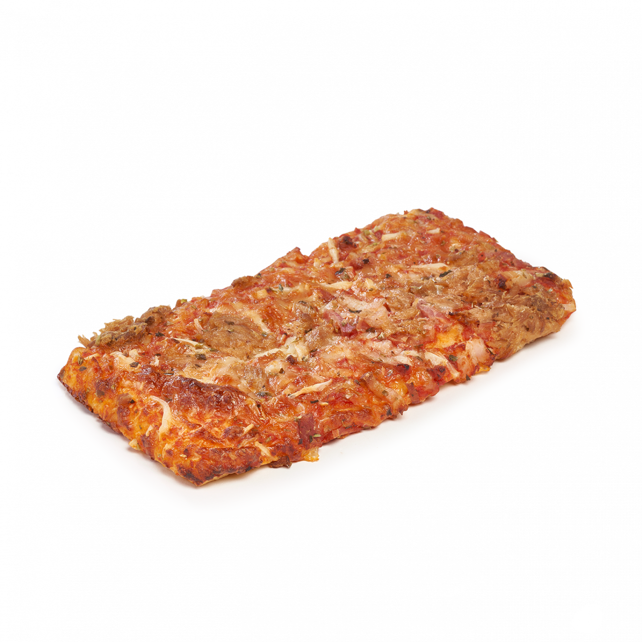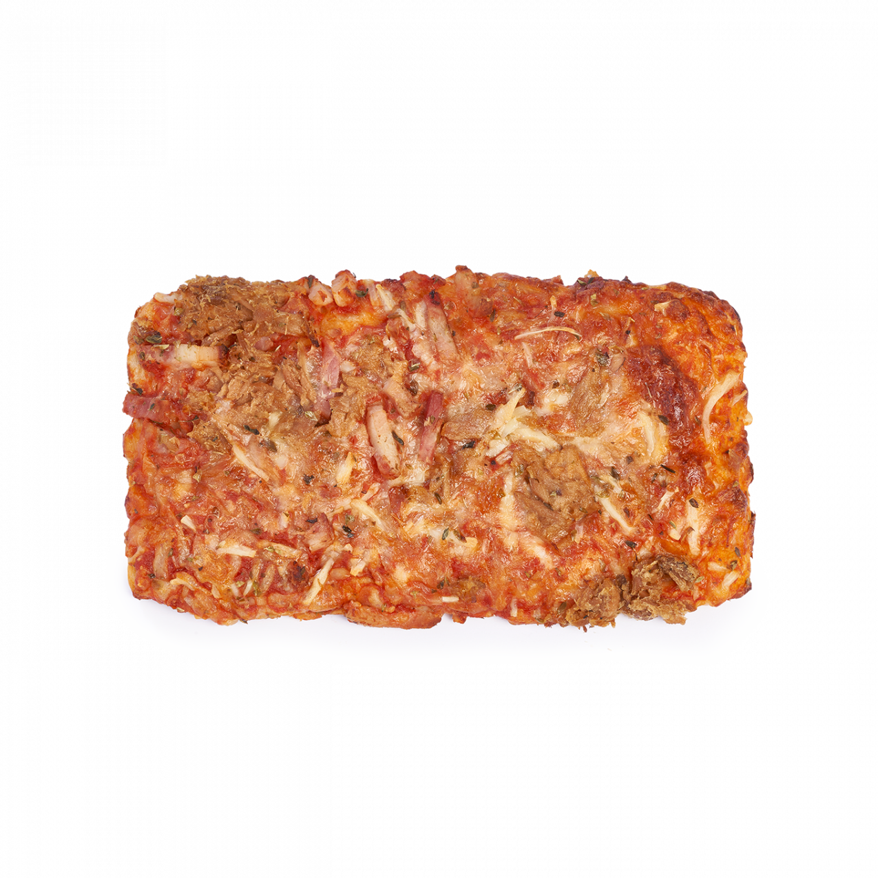 Pizzas elaboradas con un toque de aceite de oliva e ingredientes visibles en toda la superficie, sin bordes. Su formato es perfecto para ocupar toda la bandeja del horno; ahorrando espacio y tiempo de horneado.