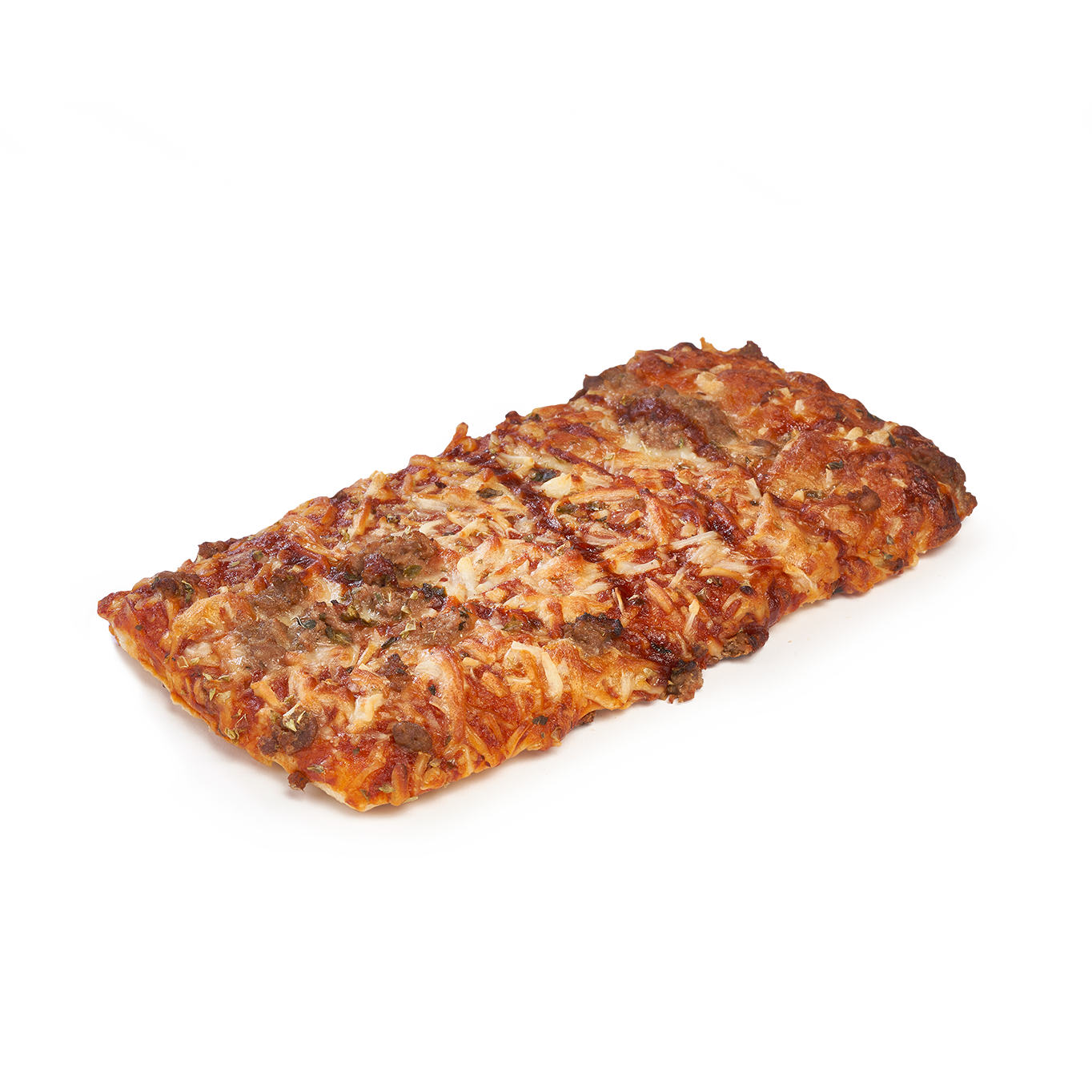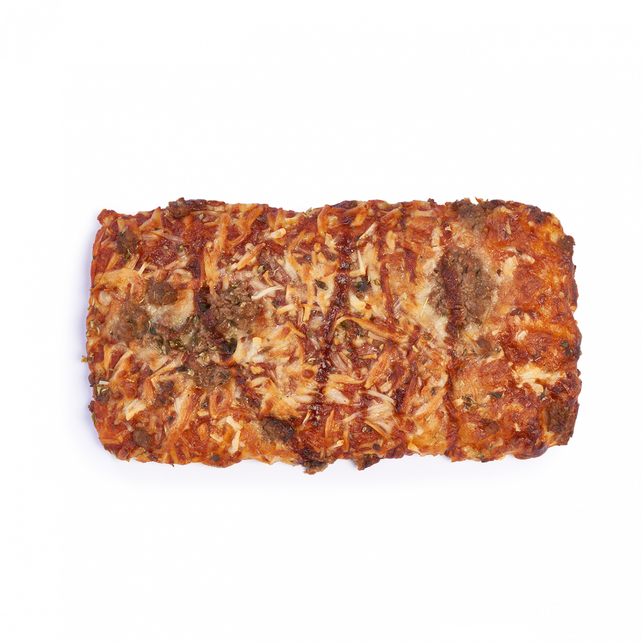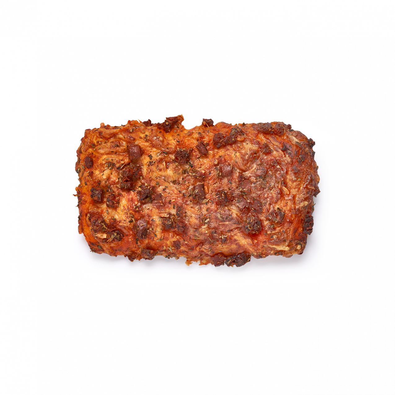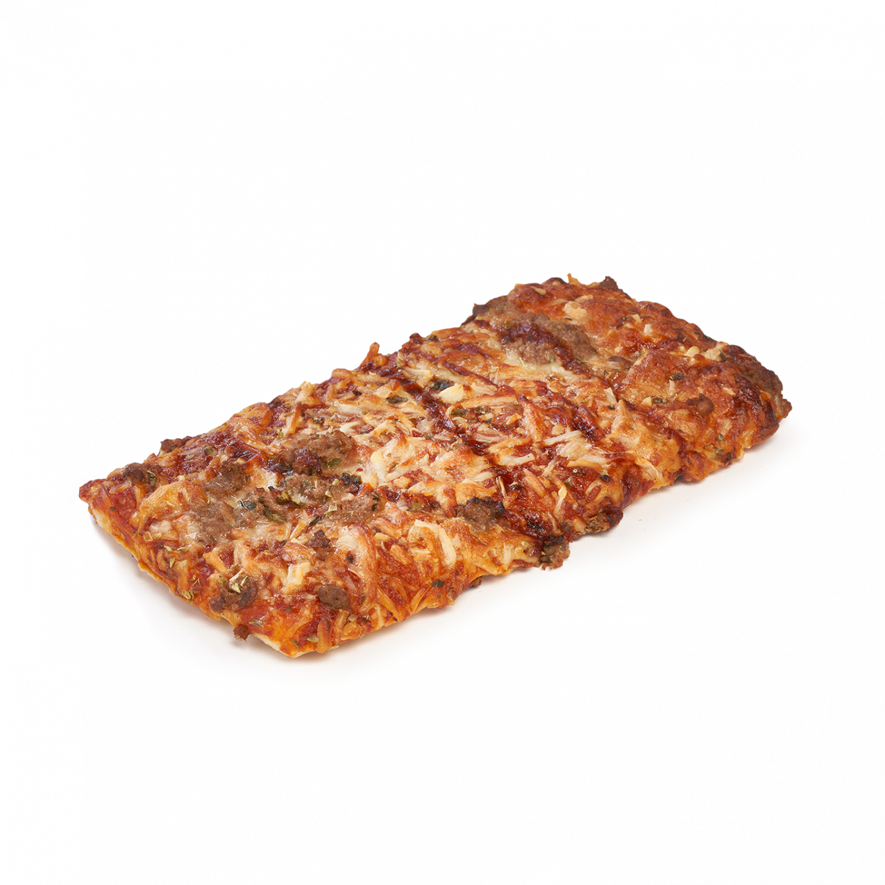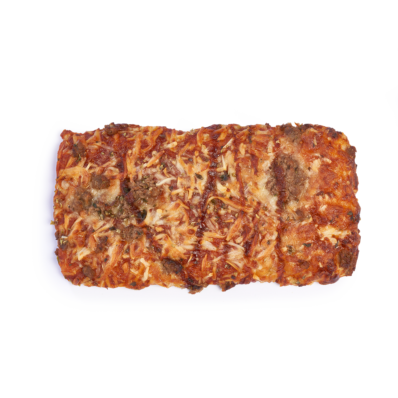 Pizzas elaboradas con un toque de aceite de oliva e ingredientes visibles en toda la superficie, sin bordes. Su formato es perfecto para ocupar toda la bandeja del horno; ahorrando espacio y tiempo de horneado.