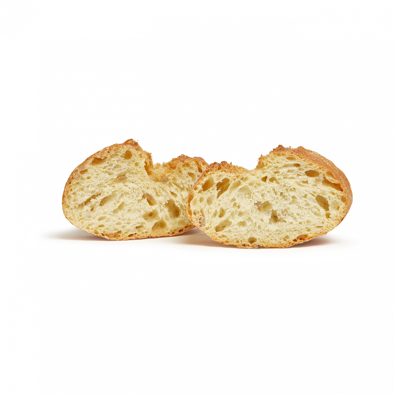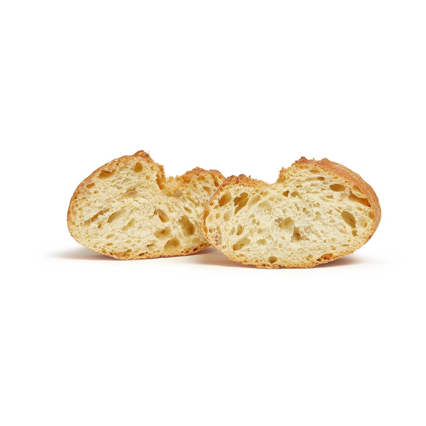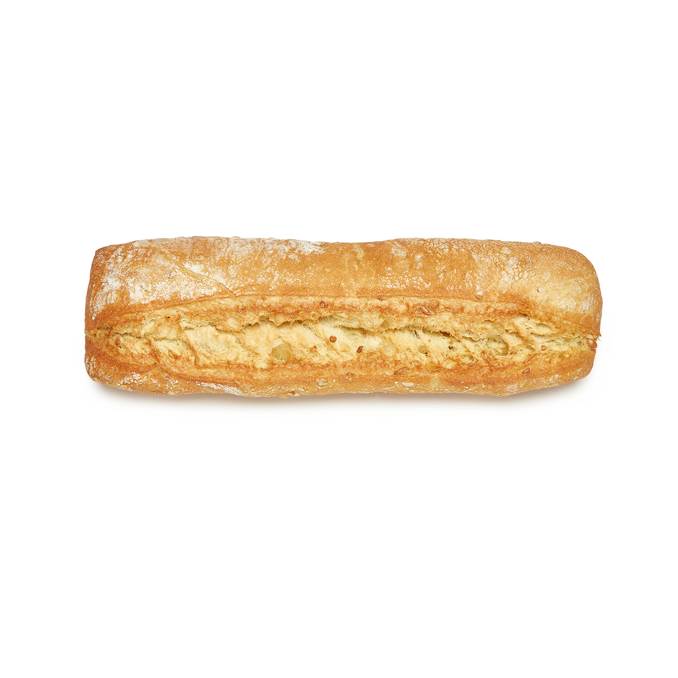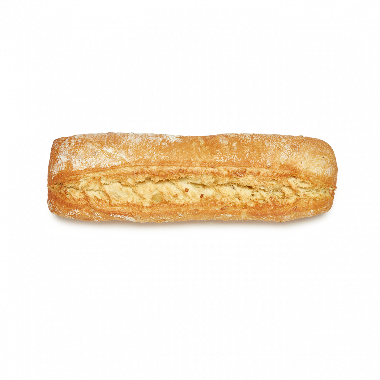 Una evolución de este pan de origen italiano de corteza fina y crujiente y miga alveolada, suave y esponjosa, esta vez elaborado con una mezcla de harinas de trigo y de maíz, incorporando semillas de girasol que aportan a este pan un sabor sorprendente.