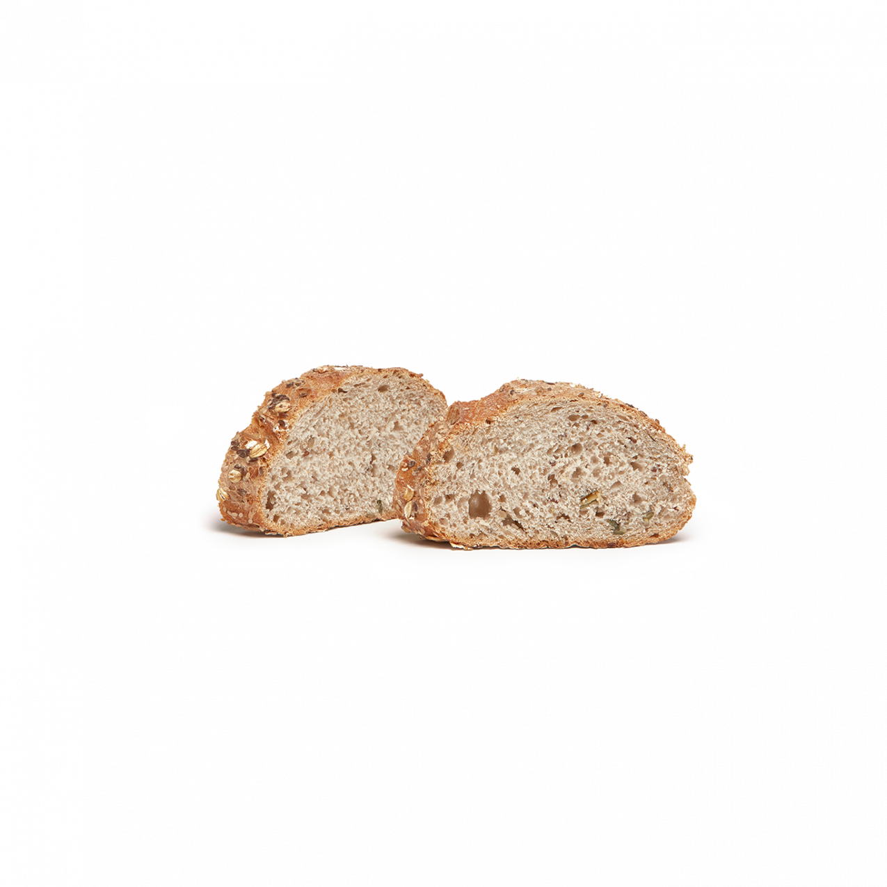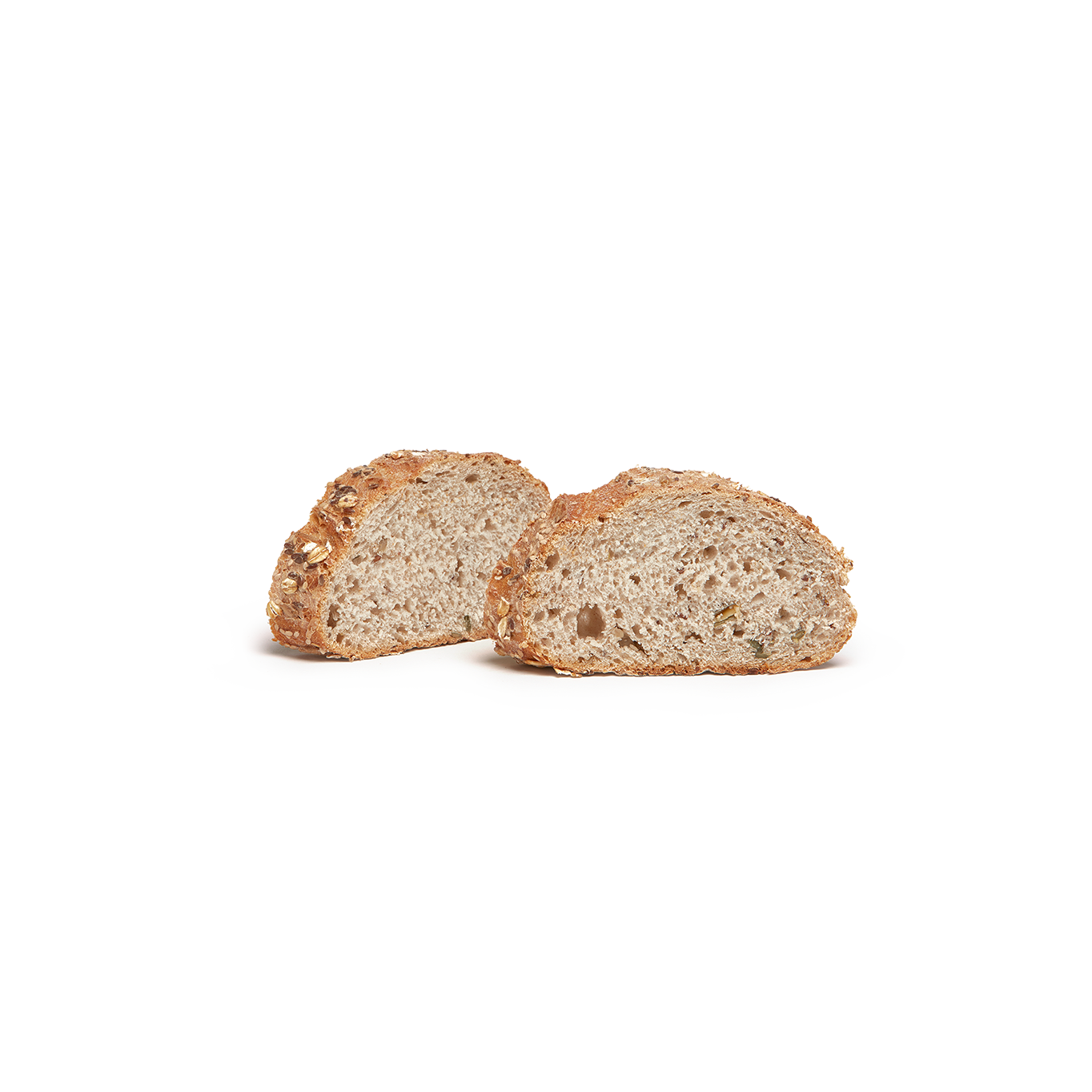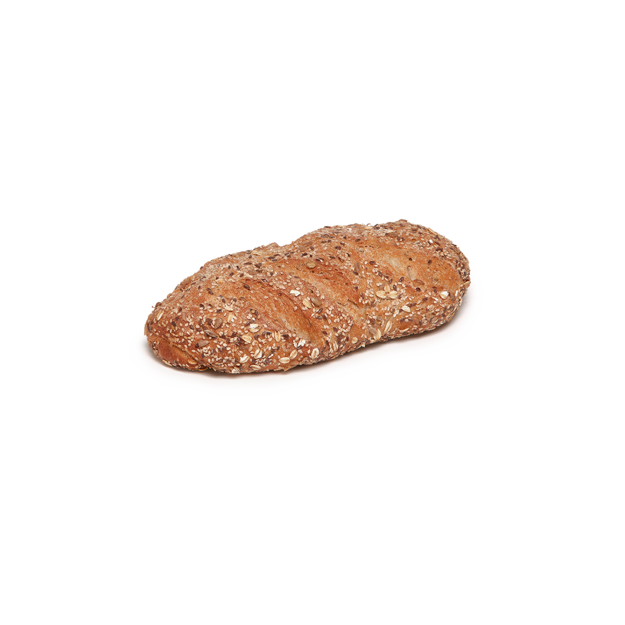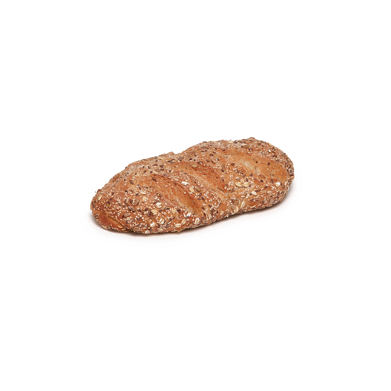 Elaborada con 69% de Cereales y Semillas 12%. Todo sabor por fuera y por dentro. Cereales: trigo, centeno, copos de avena Semillas: pipas de girasol, lino, sésamo, pipas de calabaza.