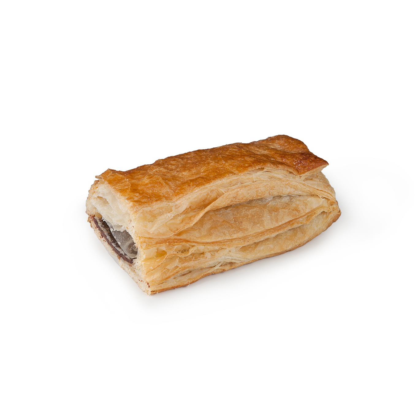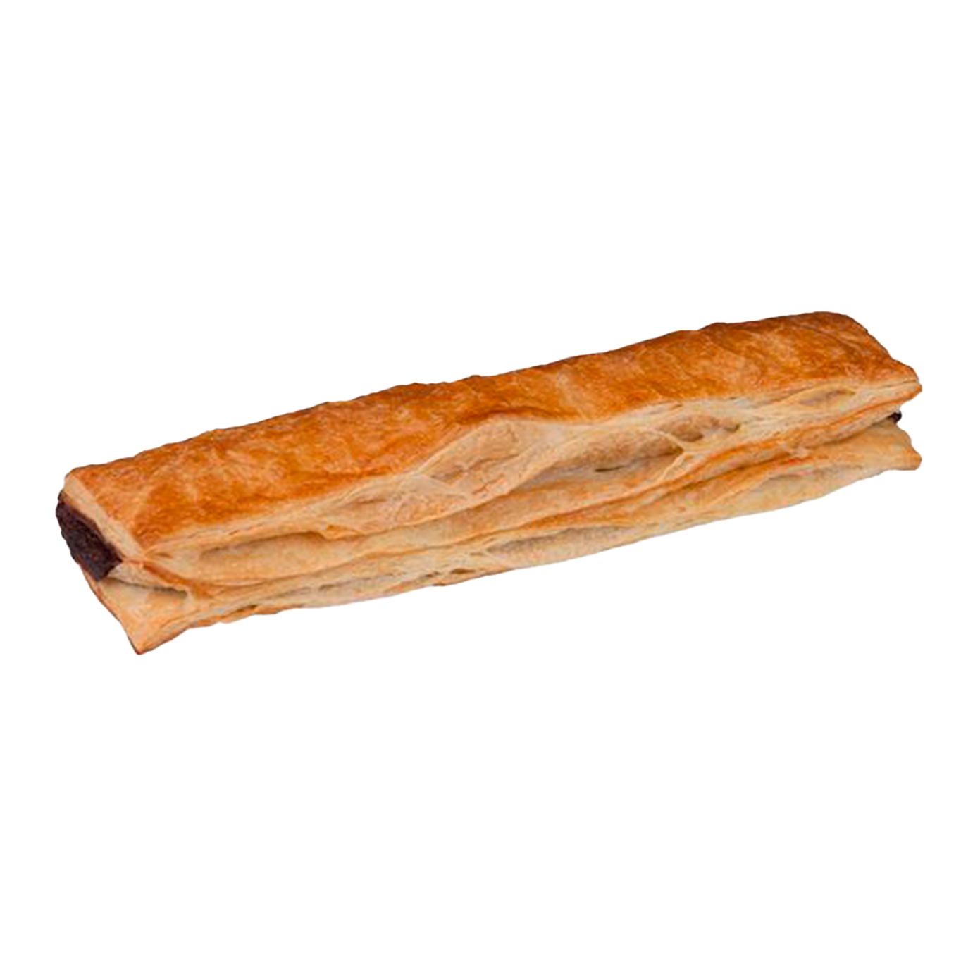 Su tamaño extra largo no deja indiferente a nadie. Es una pieza generosa, rellena con una deliciosa crema de chocolate que acompaña a un hojaldre crujiente.