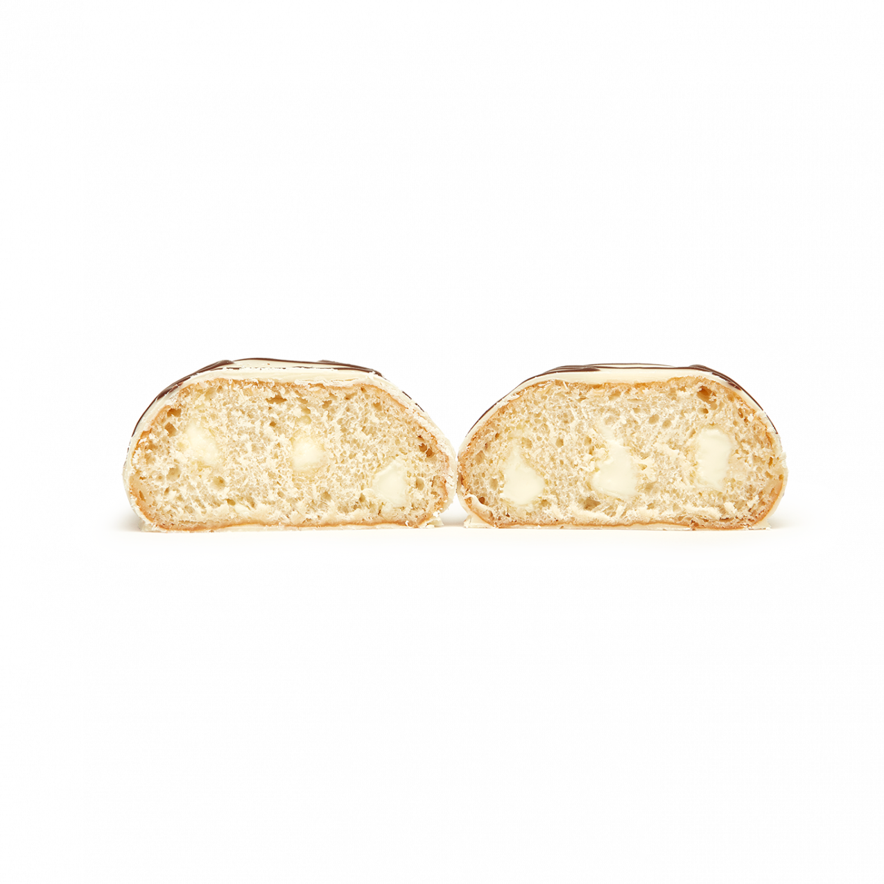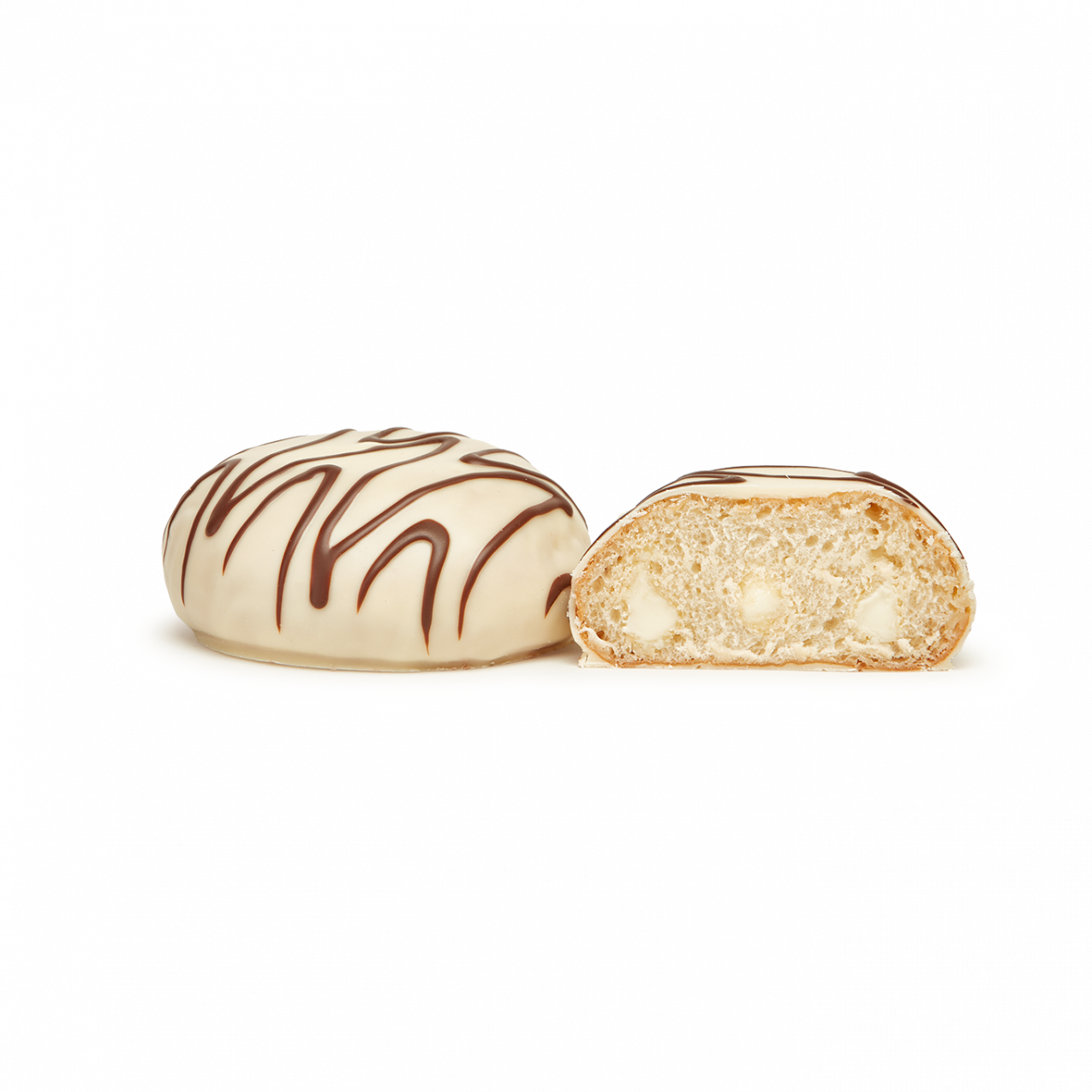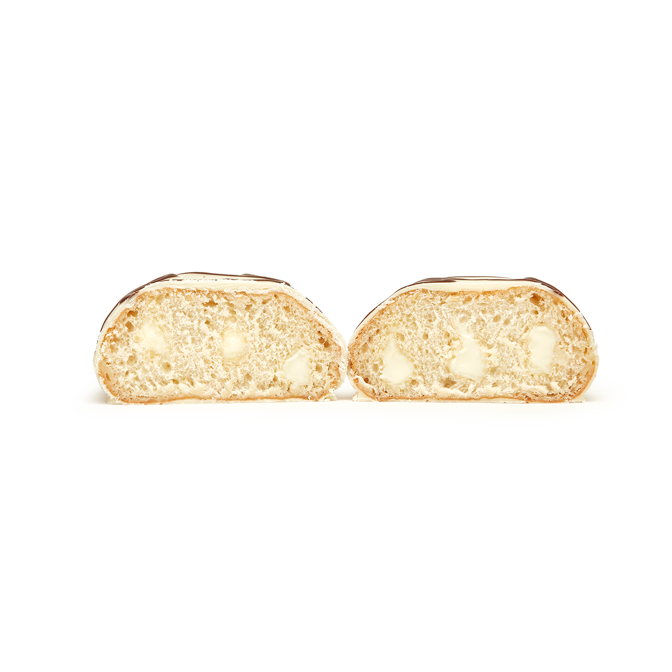 Un producto envolvente, con una apariencia que atrae y un sabor auténtico. Como si mordieras una verdadera tableta de chocolate blanco en formato berlina.