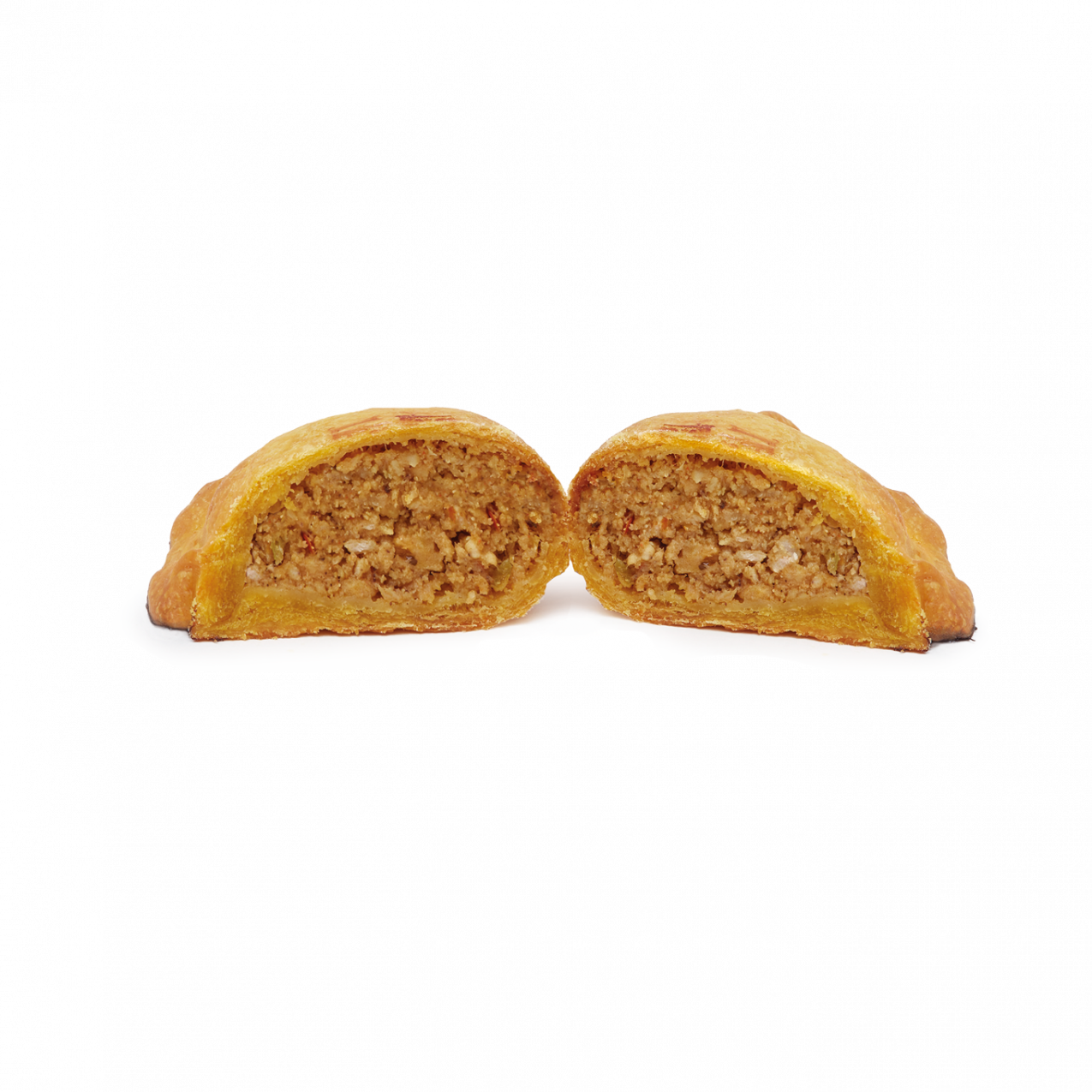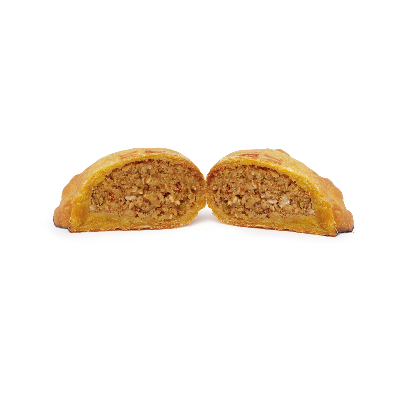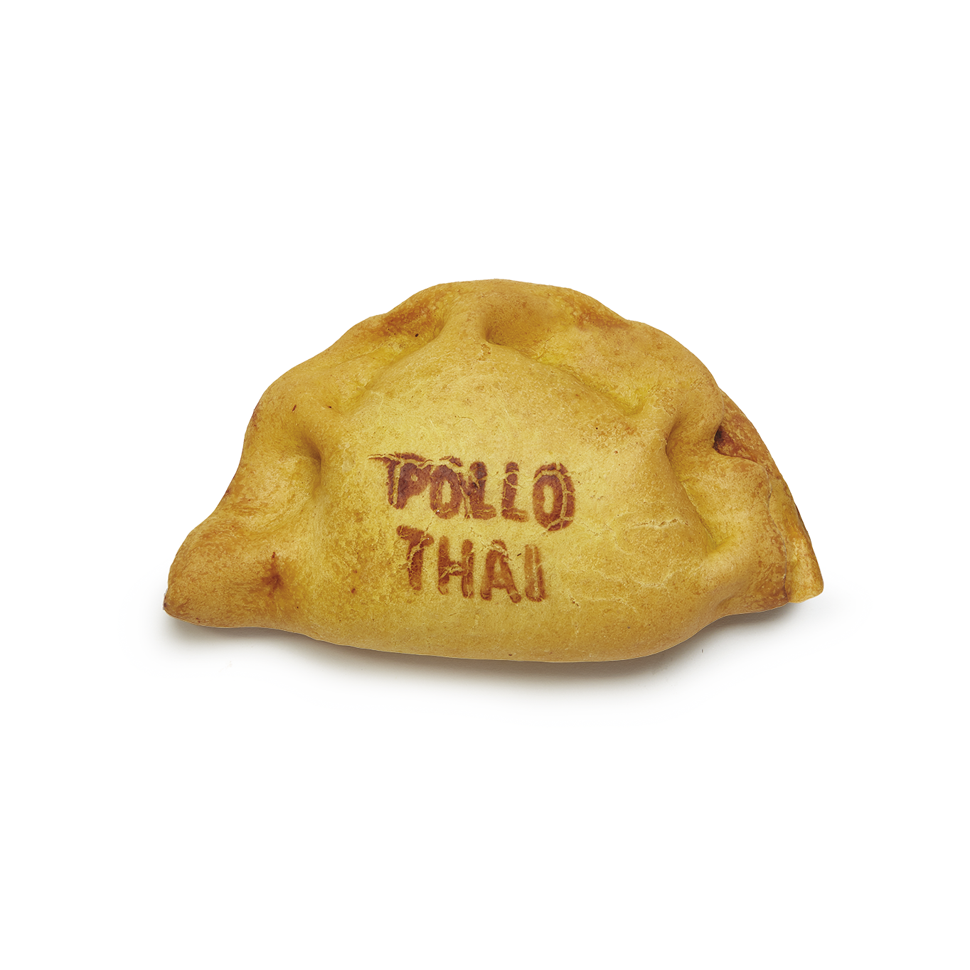 El relleno (40%) se compone de picada de pollo (19%) y cebolla frita (16%), que potencian su sabor junto a vegetales como el pimiento verde, ajo, pimiento rojo y tomate.