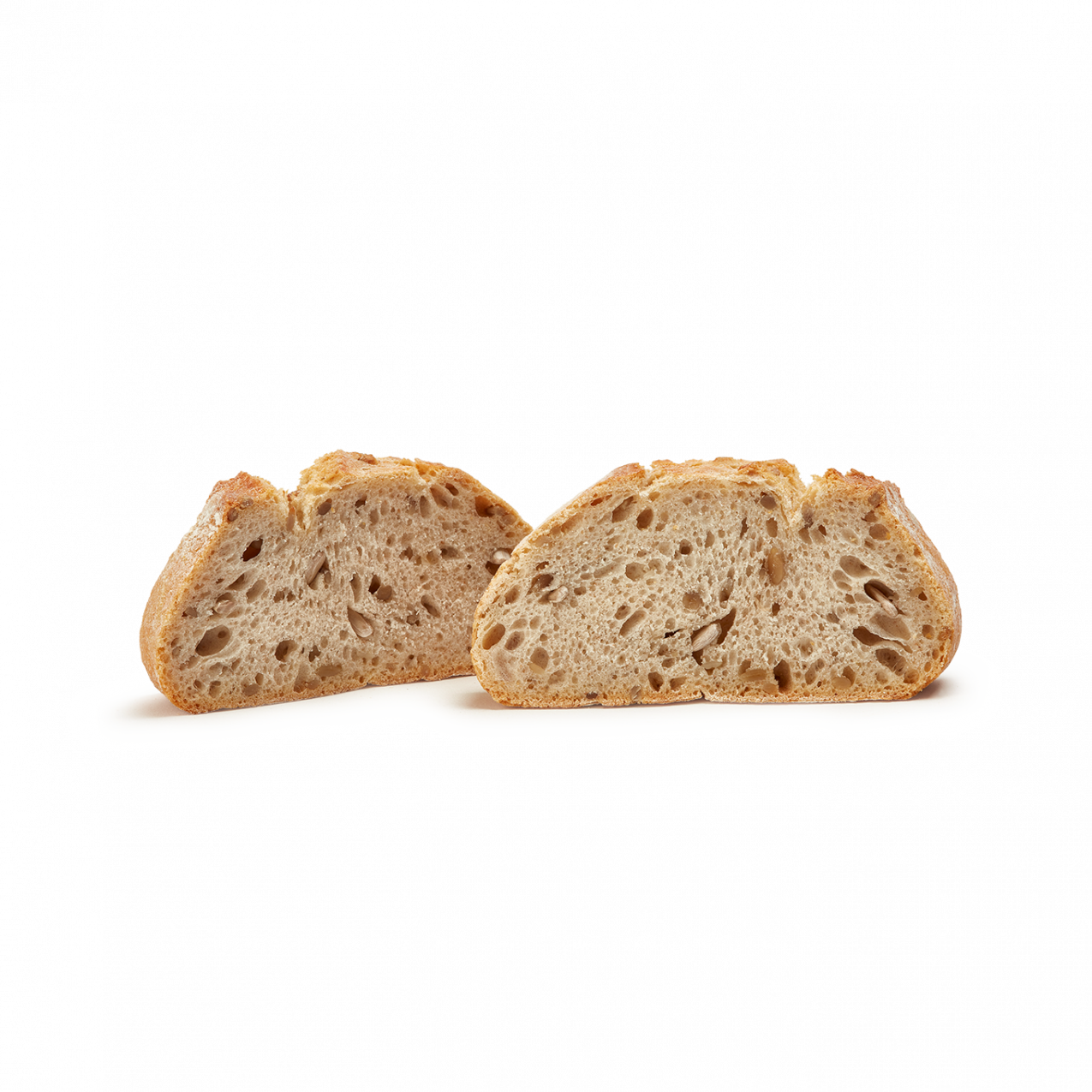 El resultado final es un pan de sabor pronunciado con acidez equilibrada sin restar un ápice de intensidad a las semillas.