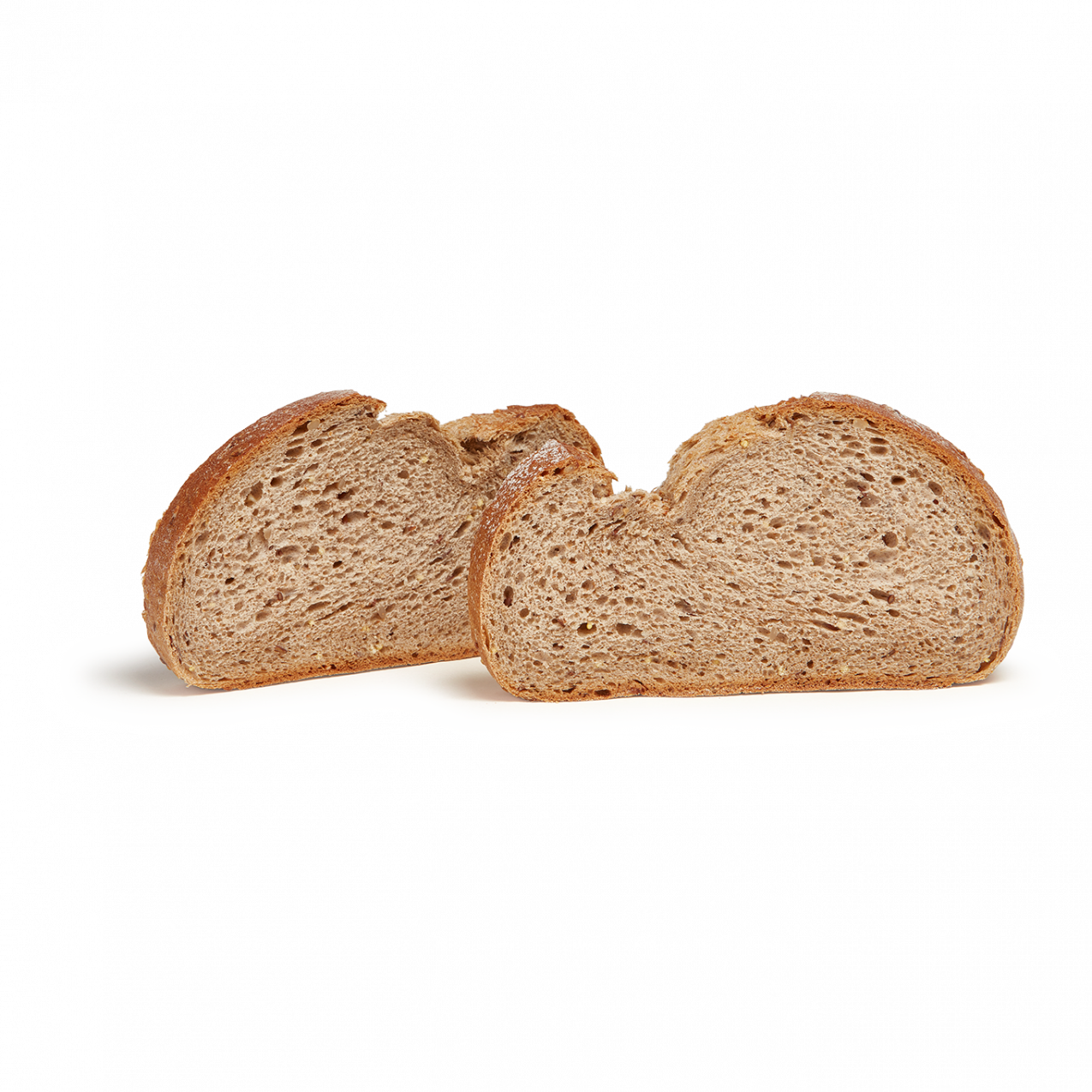 Esta hogaza está elaborada con un 39% de harina de trigo y 17% de mezcla de harinas de otros cereales y semillas.