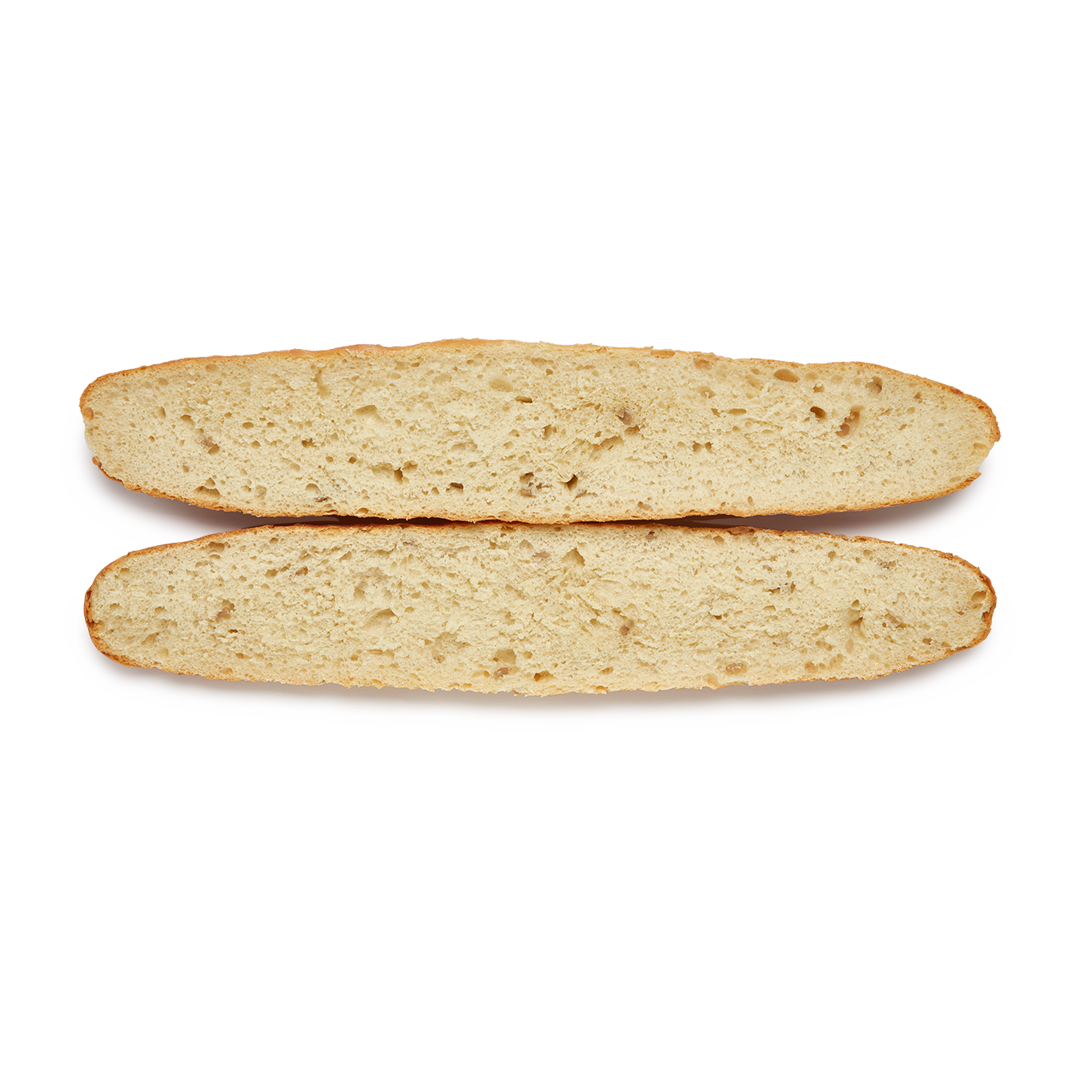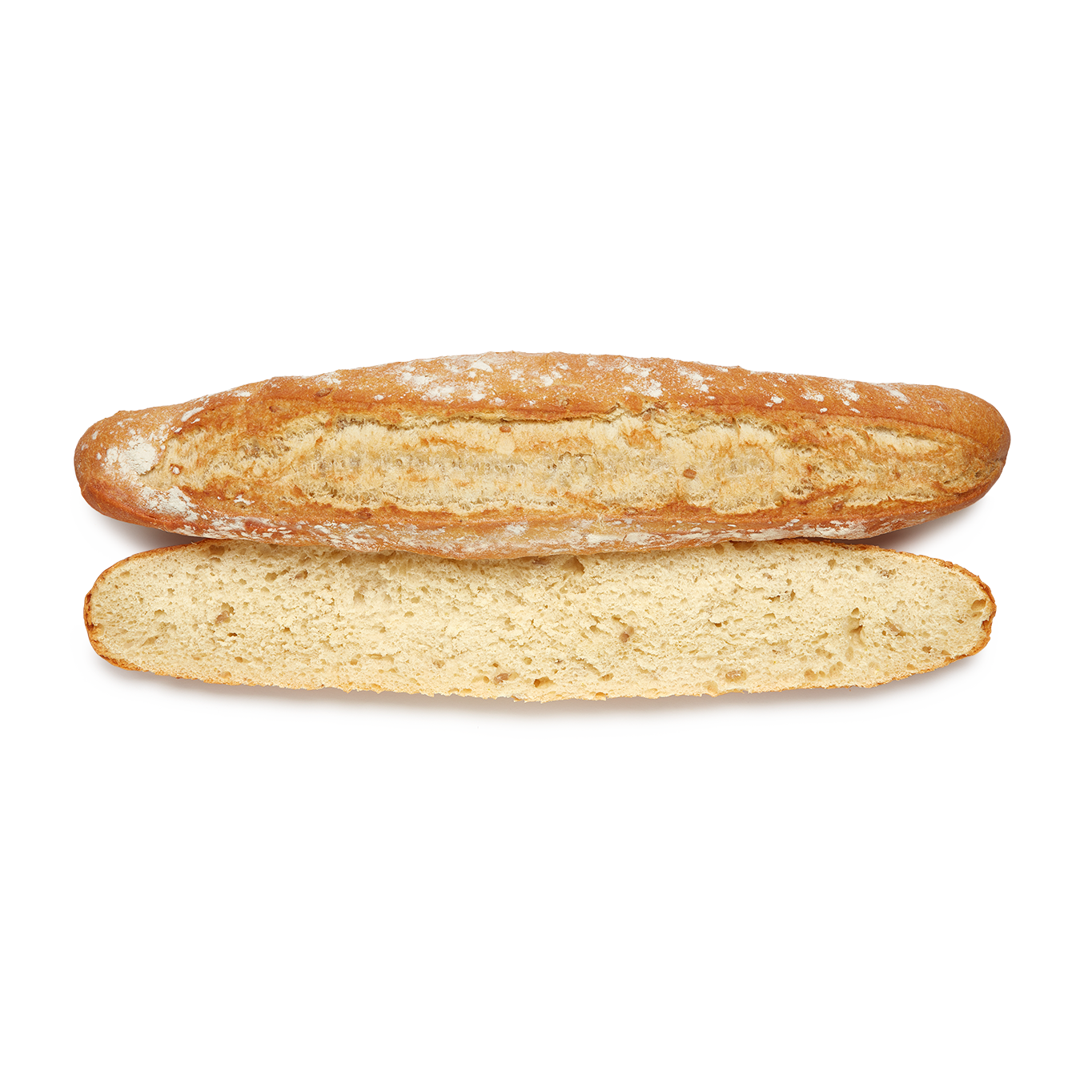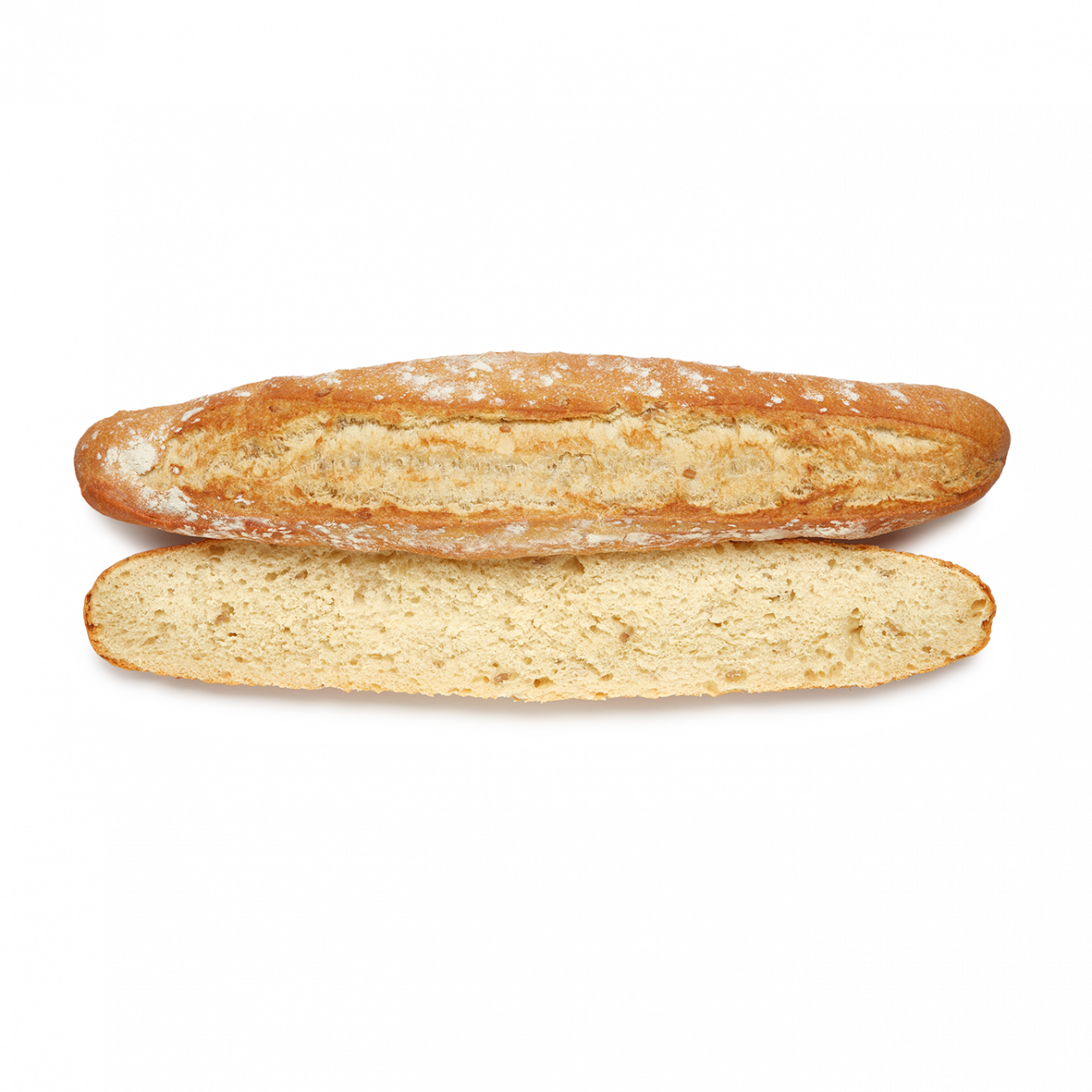 Panes de suela plana cocidos en los tradicionales Hornos de Suela de Piedra. La elevada y constante temperatura de este tipo de cocción dota al pan de una corteza rústica muy crujiente y una miga muy alveolada, consiguiendo una mayor durabilidad.