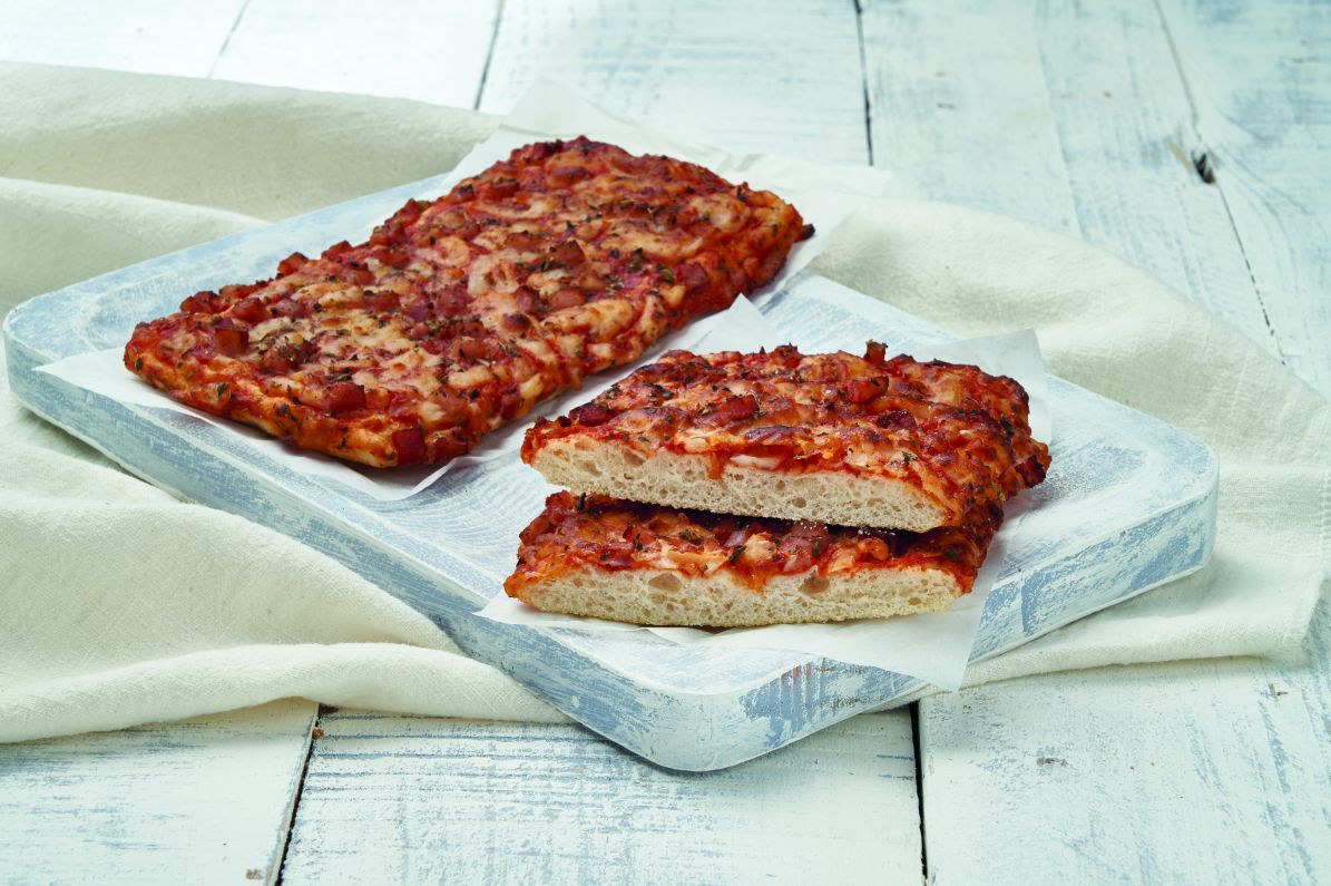 Surtido de 4 pizzas de alta rotación en formato rectangular: estas pizzas están elaboradas con un toque de aceite de oliva e ingredientes visibles en toda la superficie y sin bordes. Los sabores que podemos encontrar son de bacon y atún, jamón y queso, barbacoa y chorizo, sin olvidarnos de la CristalPizza Barbacoa de la gama Cristal.