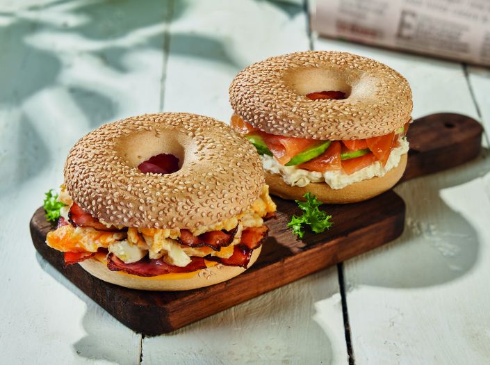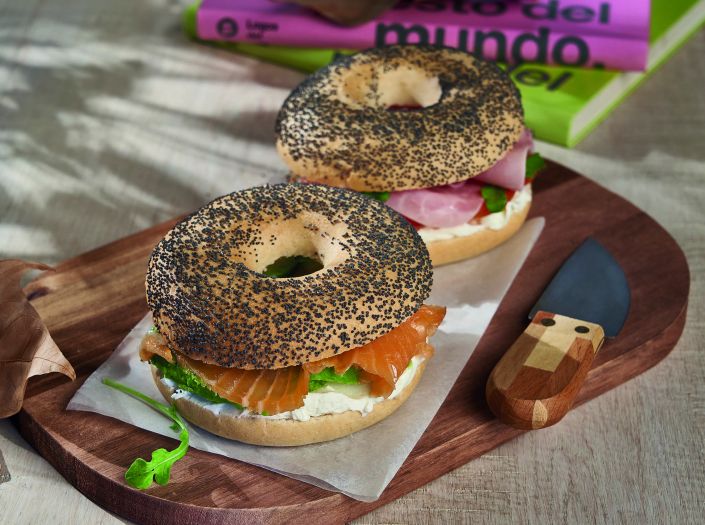 El bagel se distingue por su textura interior densa y una corteza fina ligeramente crujiente. El resultado es un panecillo consistente ideal para aguantar recetas con salsas o quesos en crema.