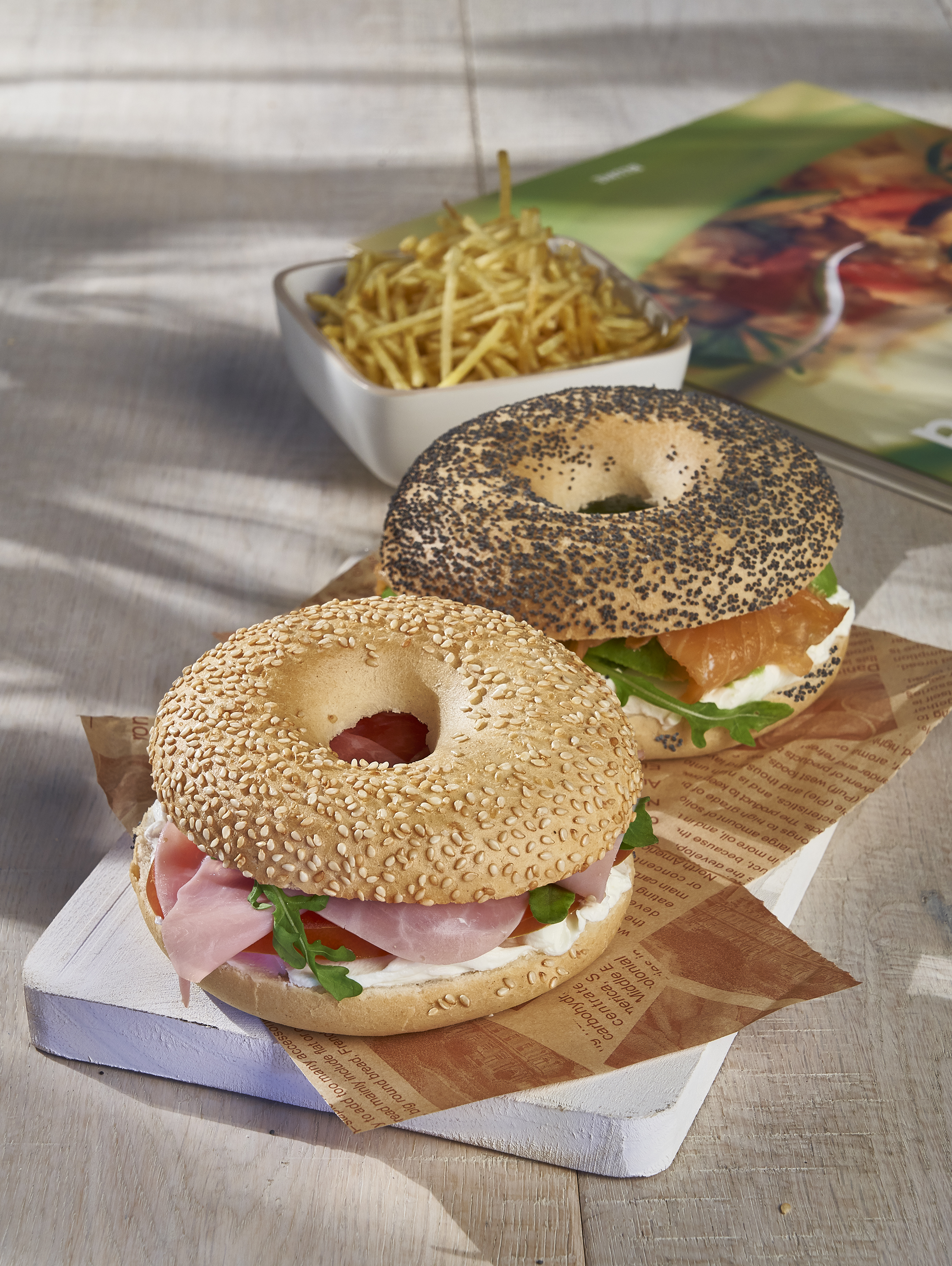 Ahora es más fácil que nunca que incorpores el panecillo más icónico de Nueva York en tu establecimiento. Gracias a las masas congeladas y al pan precocido congelado, te puedes hacer con piezas con tanta demanda como, precisamente, la Gama Bagels. Los dos alimentos que la componen, y de los que te vamos a hablar a continuación, son además productos precortados y pertenecientes a la categoría ‘Descongelar y Listo’, con lo que solo necesitarás sacarlos un rato antes de ofrecerlos, sin necesidad de que pasen por el horno.