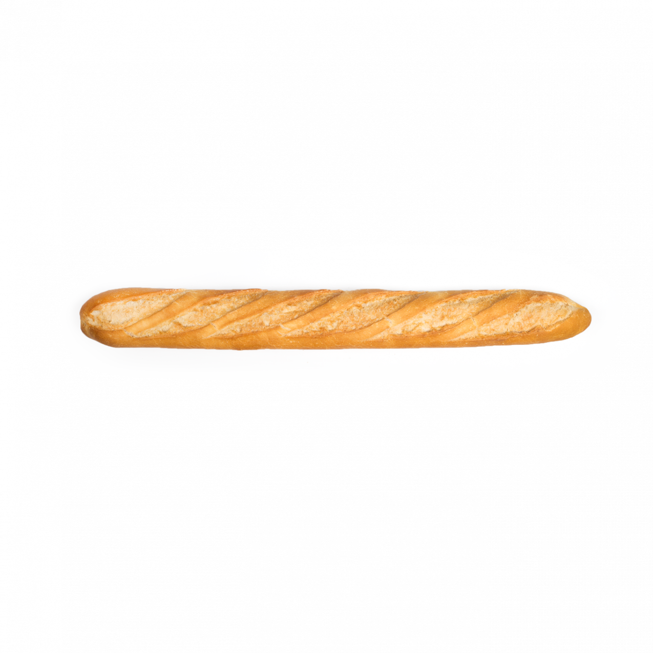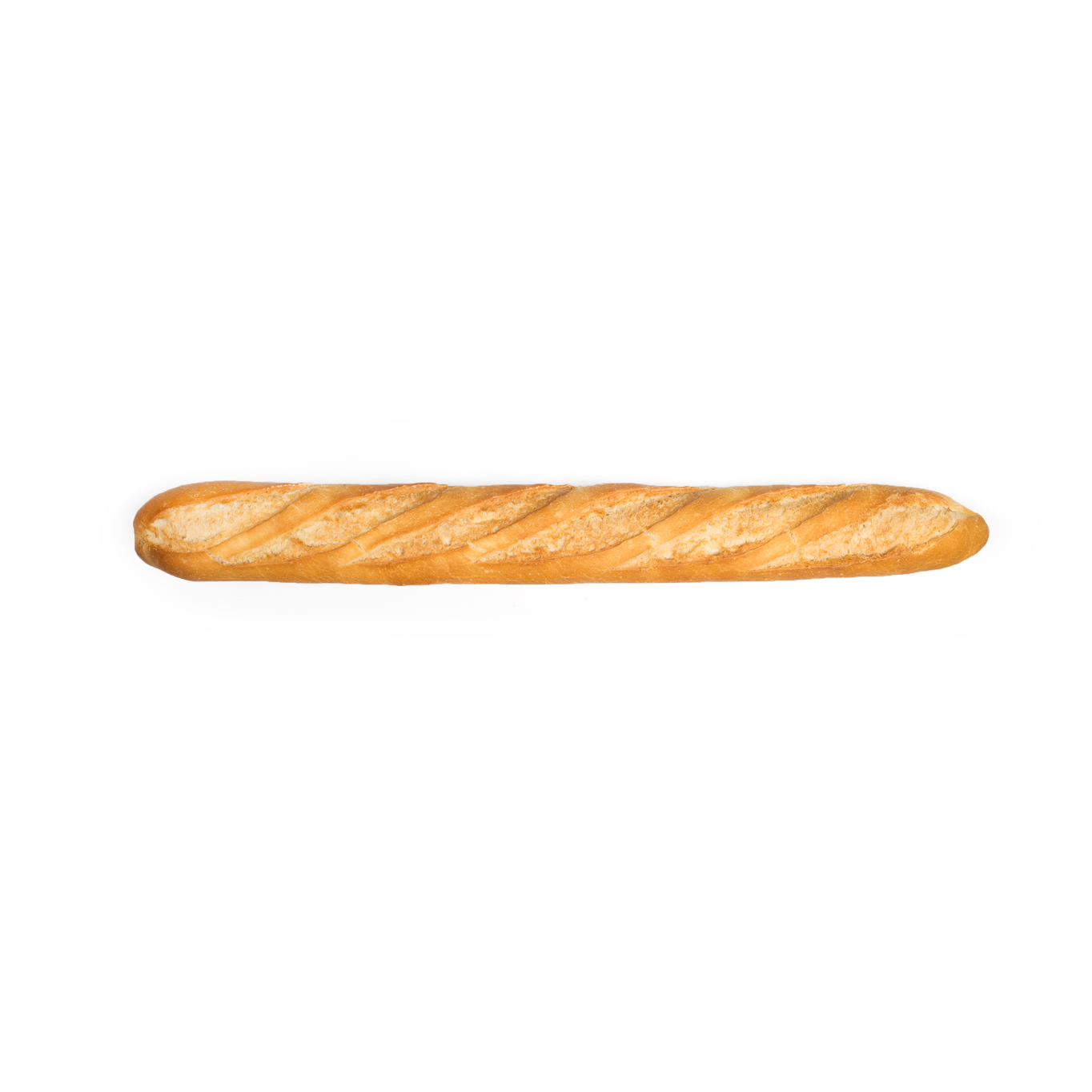 Esta clásica baguette con puntas ligeramente marcadas es uno de los formatos por excelencia del pan blanco. De miga tierna y corteza fina y crujiente. Su sabor suave combina con cualquier alimento. Ideal para acompañar las comidas y cenas o para preparar crujientes bocadillos.