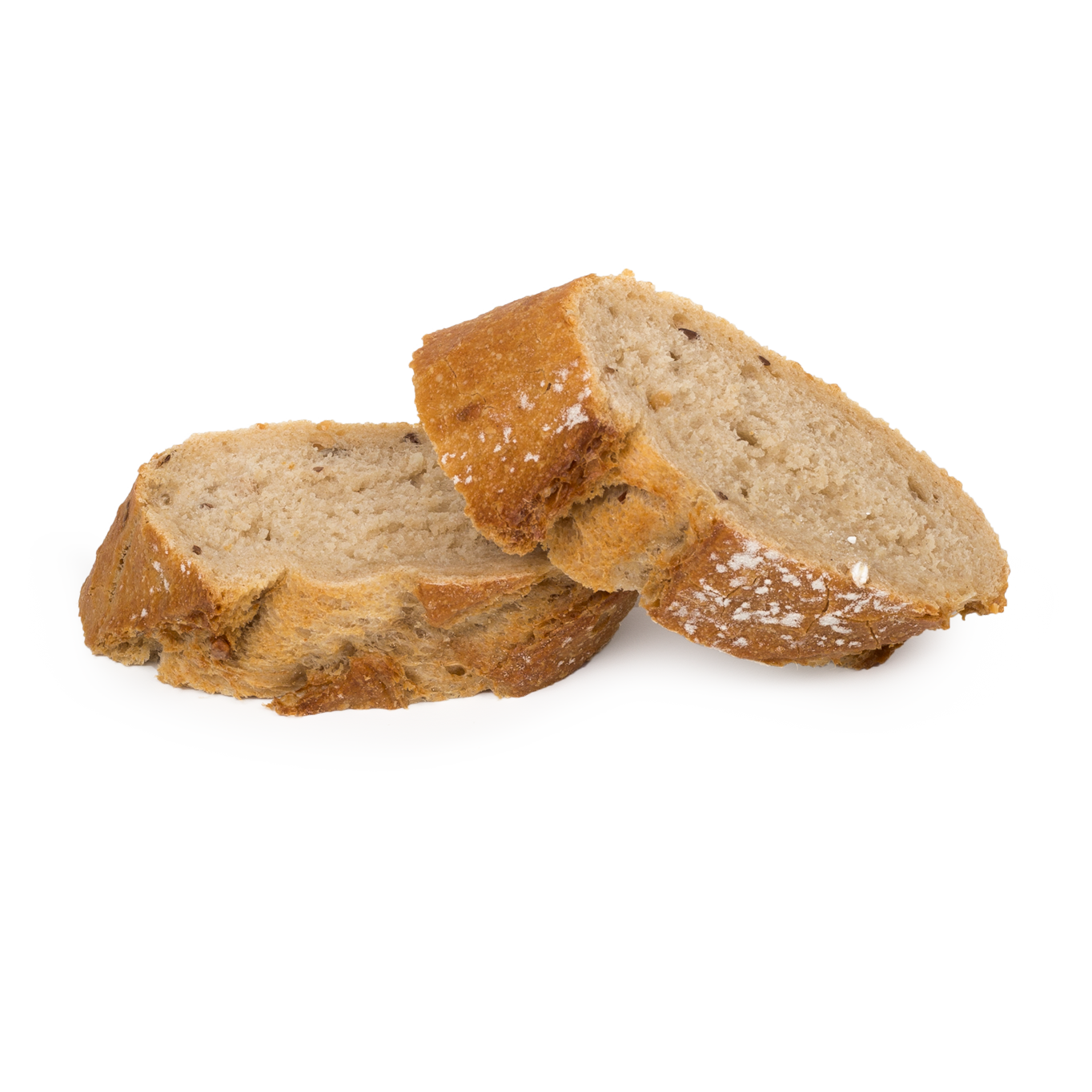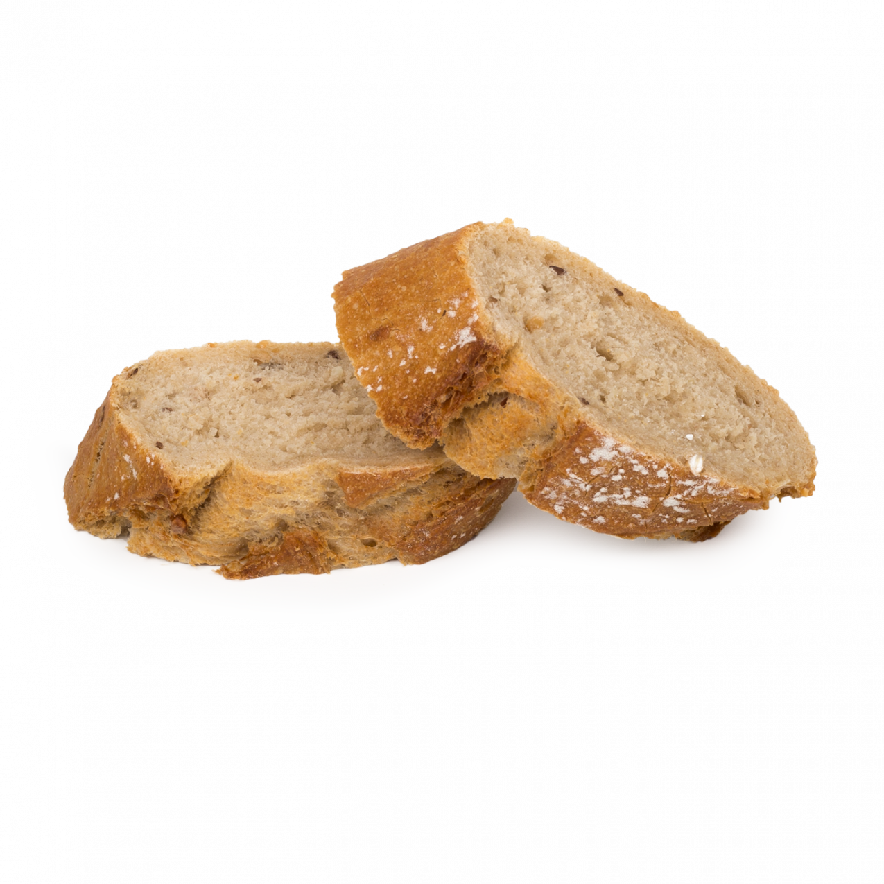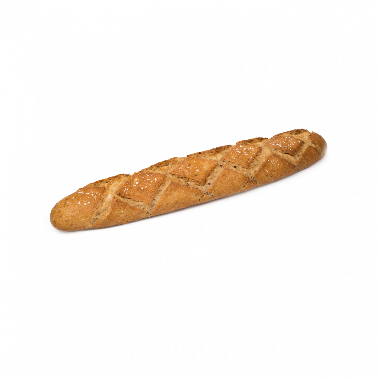Su lenta elaboración le confiere una superficie con burbujas que se traduce en una mayor durabilidad. Posee una corteza dorada y crujiente pero fina y fácil de comer. Fuente de fibra. Contiene Masa Madre.
