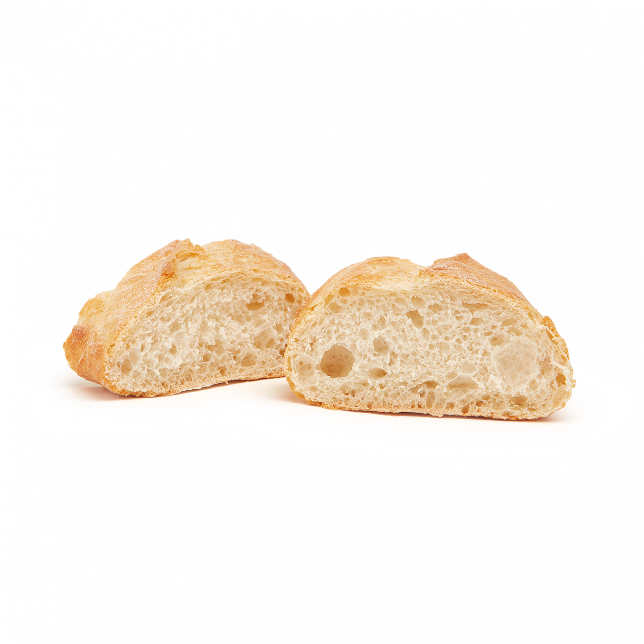 Panes de suela plana cocidos en los tradicionales Hornos de Suela de Piedra. La elevada y constante temperatura de este tipo de cocción dota al pan de una corteza rústica muy crujiente y una miga muy alveolada, consiguiendo una mayor durabilidad.