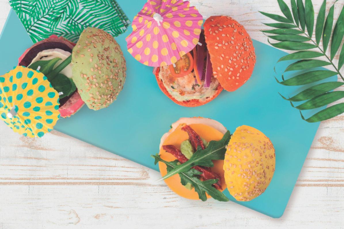 • Para eventos. Y es que sabemos que las hamburguesas son un infalible en celebraciones o caterings, pero si quieres hacerlo todavía más divertido, nuestro Surtido Party Bun es perfecto. Cuatro panecillos para mini burgers, originales y llamativos, en diferentes colores y sabores que sorprenderán a todos: amarillo con sabor a curry, rojo con tomate, verde con albahaca y negro con tinta de calamar.
