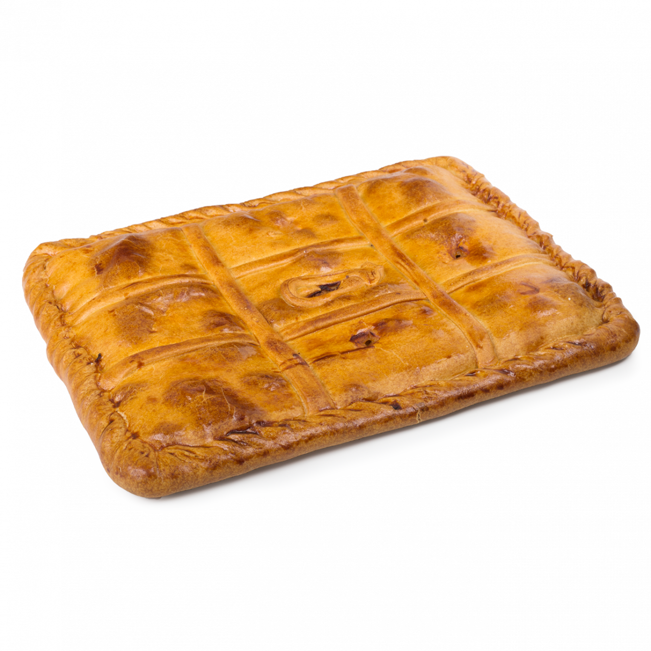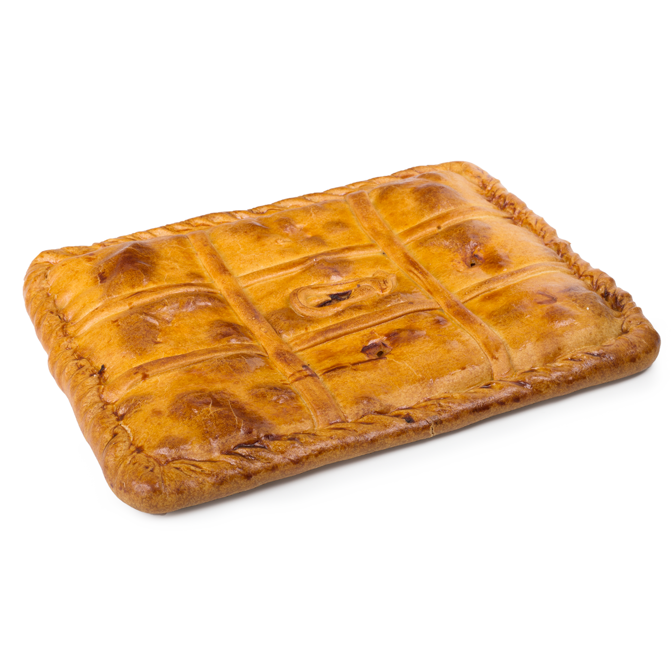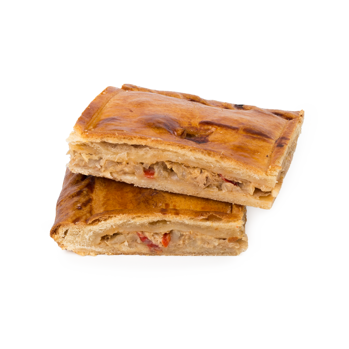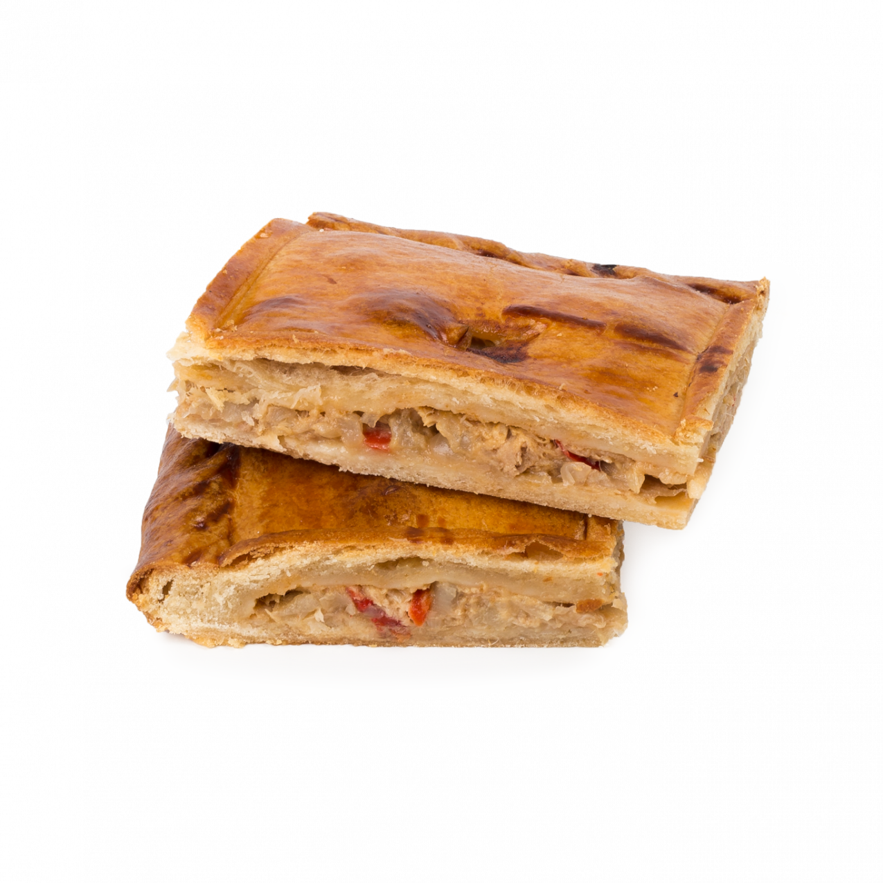 Elaborada de forma manual, con finas capas de masa laminada y un sabroso relleno a base de lomos de atún, cebolla, pimiento y tomate. Su formato rectangular resulta ideal para ofrecer en porciones.