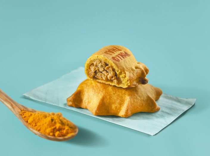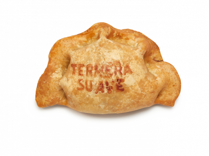 Masa blanca: elaborada con harina de trigo y aceite de girasol, su masa un poco más clara ayuda a la diferenciación. Además, el nombre de la ternera está impreso en el centro de la empanada.