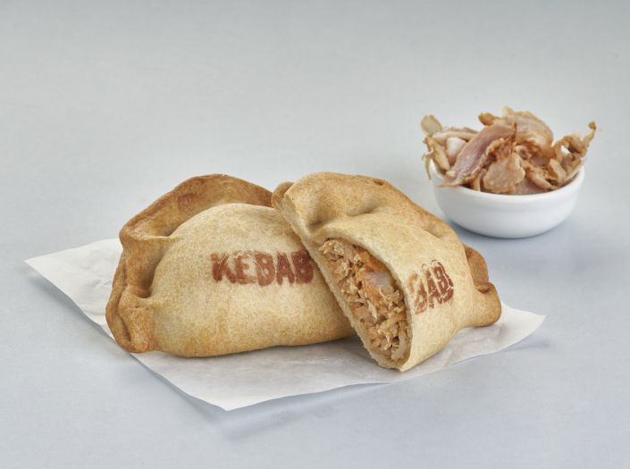 Relleno Jugoso: Nuestro kebab está elaborada con pollo (23%) condimentado con especias y hierbas diversas. Se asa en un horno vertical y luego se lonchea. Seguramente reconoces al kebab por la salsa que lo acompaña y que lo hace aún más jugoso; por eso las lonchas se entremezclan con una salsa sabor yogur ligeramente especiada.