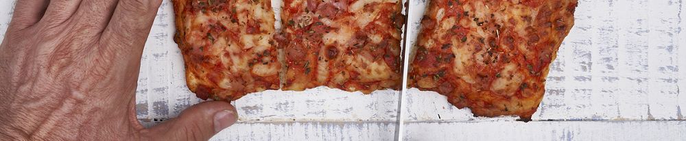 The benefits of frozen doughs mean that you can include savoury products like this one in your cafeteria, oven or bakery. Specifically, the rectangular ham and cheese pizza has a spongy, honeycombed base made from flour, water and a touch of virgin olive oil. On the other hand, the ingredients are added by hand: tomato, cooked ham and delicious mozzarella cheese that make its flavour unique. In addition, as there are no edges, the ingredients occupy the entire surface of the pizza, so its flavour is 100% concentrated in the mouth. Its size? It is perfect for eating and baking, as it occupies the entire surface of the oven and helps to optimise space.
