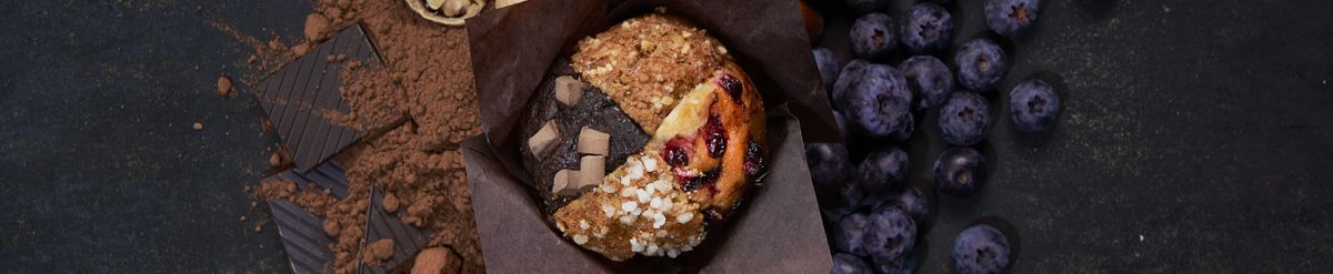 The muffin is made with the usual ingredients: flour, egg, oil, milk, sugar and a slight touch of vanilla. But it also offers multiple options for fillings and finishes: walnuts, jams, creams... The true quest for pleasure involves rewarding homemade, healthy and artisan products. Our muffins have generous fillings and enveloping flavours and they play with textures