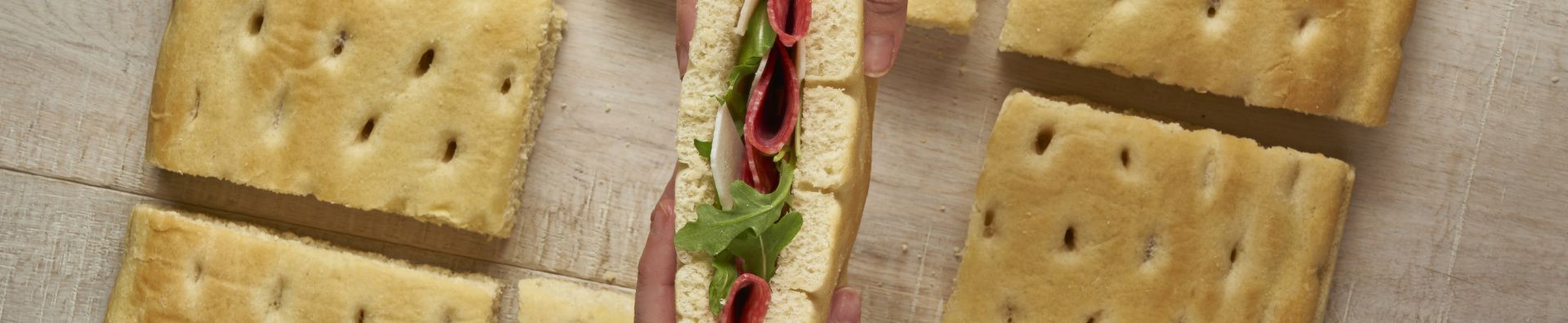 La Focaccia es un tipo de pan tradicional de la cocina italiana que es mundialmente conocido por su característico sabor y su agradable textura. No solo eso: es un producto muy versátil que puede utilizarse como base para sándwiches, pero también como acompañamiento de platos o como aperitivo con los condimentos adecuados. Su sabor mediterráneo y su textura esponjosa hacen las delicias de los clientes que buscan alternativas más frescas y de calidad. Además, eleva el atractivo de cualquier menú. La Focaccia es una de las últimas novedades que hemos lanzado y ya intuimos que va a quedarse entre nosotros mucho tiempo.