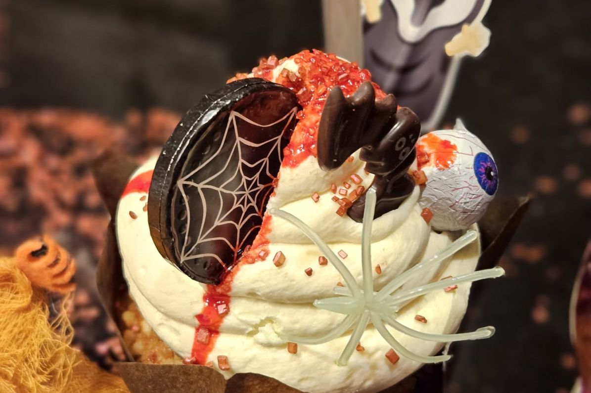 Otro tanto puedes hacer con los suculentos muffins. El Muffin Nuts & Cream, el Muffin Passion Red, el Muffin Carrot Cake o el Muffin Red Velvet tienen, por ejemplo, muchas posibilidades. Solo tendrás que poner nata sobre ellos, y aprovechar lo que te ofrece esta textura. Puedes dejar caer virutas de chocolate de algún color en especial (el naranja es especialmente Halloween), o incrustar en la nata piezas de chocolate, como murciélagos, o moneditas de chocolate sobre las que hayas pintado alguna telaraña.