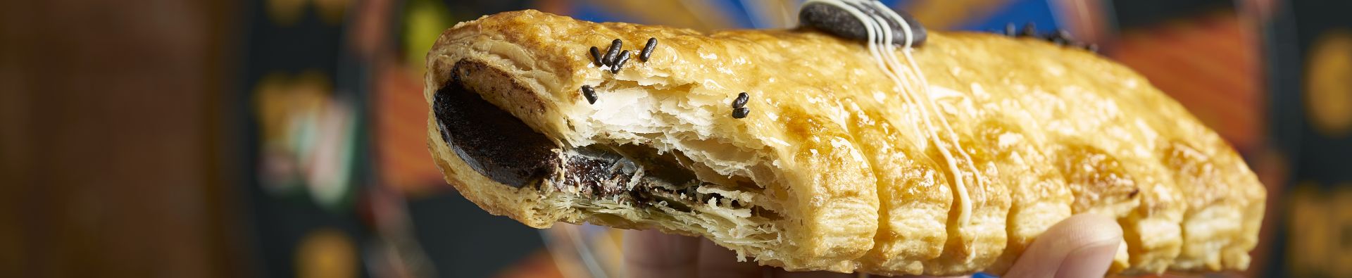 Y chocolate en dos versiones es también lo que puedes encontrar en las cañas, como ya adelantábamos. La primera, la Caña de Crema de Chocolate, es la clásica, con cortes en su superficie y relleno de crema de chocolate con avellanas. El Cañón de Crema de Chocolate, por otro lado, es un hojaldre de gran tamaño ideal para los más chocolateros. Su tamaño extra largo no deja indiferente, así como su crema de chocolate y su hojaldre crujiente. Decorado con azúcar que se funde durante el horneado, queda así con un extra de crujiente que resulta absolutamente insuperable.