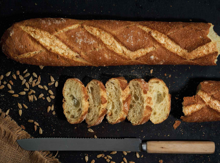 Se trata de un pan elaborado con amasados lentos y grandes reposos lo que confiere a la miga una estructura alveolada y una textura suave e hidratada. El resultado es un pan de alta durabilidad y absolutamente delicioso.