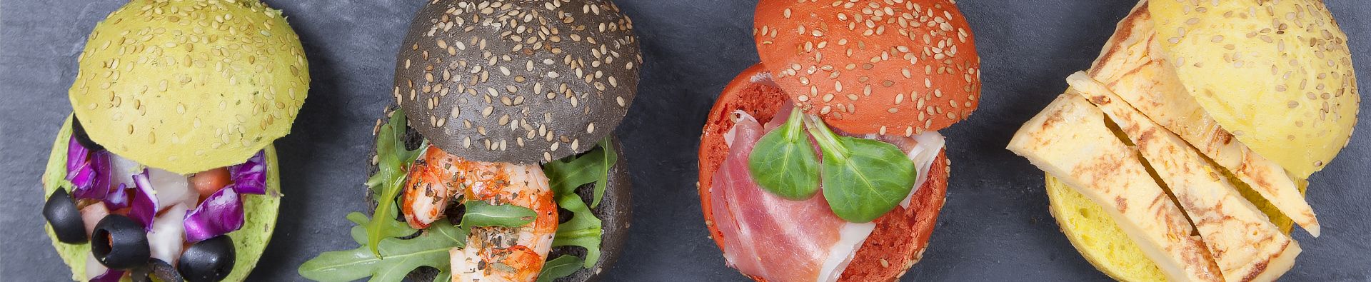 ¿Qué puedes aportar en este sentido a tu local? Tienes diferentes opciones de panecillos. Si en tu restaurante o establecimiento de hostelería queréis alejaros de lo clásico, el surtido de Party Bun será el más indicado para vosotros. Este surtido está formado por panecillos de mini hamburguesas con sabor a tomate, curry, albahaca y calamar. Sus colores llamativos, además, dan un toque espectacular que hará que nadie las pierda de vista cuando llegue a la mesa.