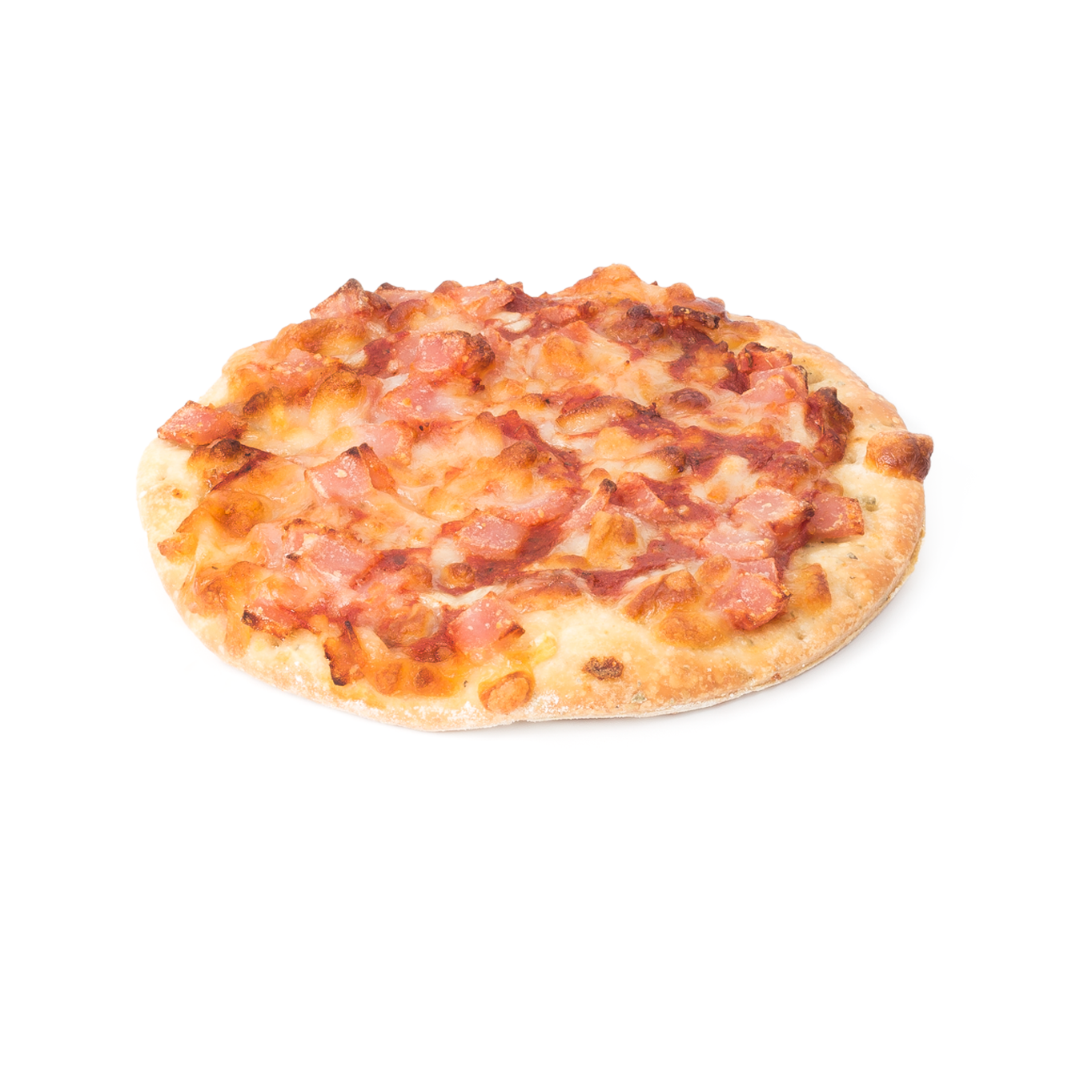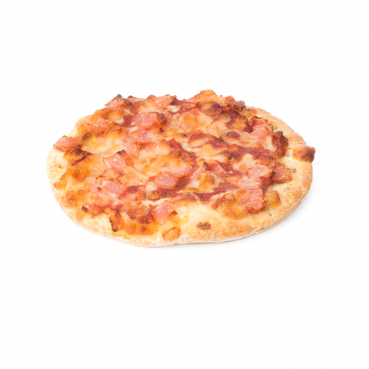 Todo el sabor mediterráneo en una pizza con formato redondo e individual. Elaborada con una masa muy artesana y relleno abundante elaborado con tomate, york y queso mozzarella.
