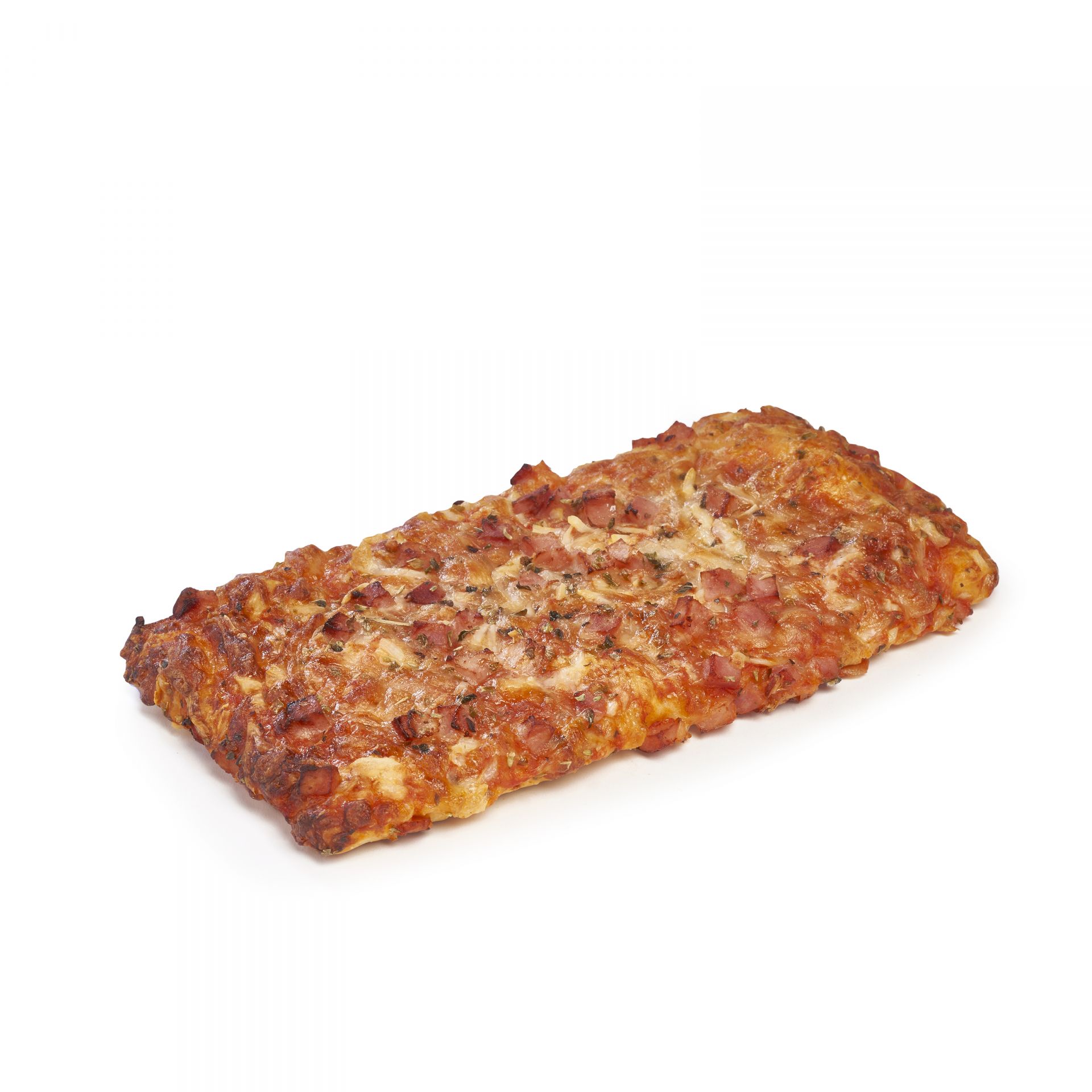 Tomate, jamón cocido (20%) y queso mozarella (19%).