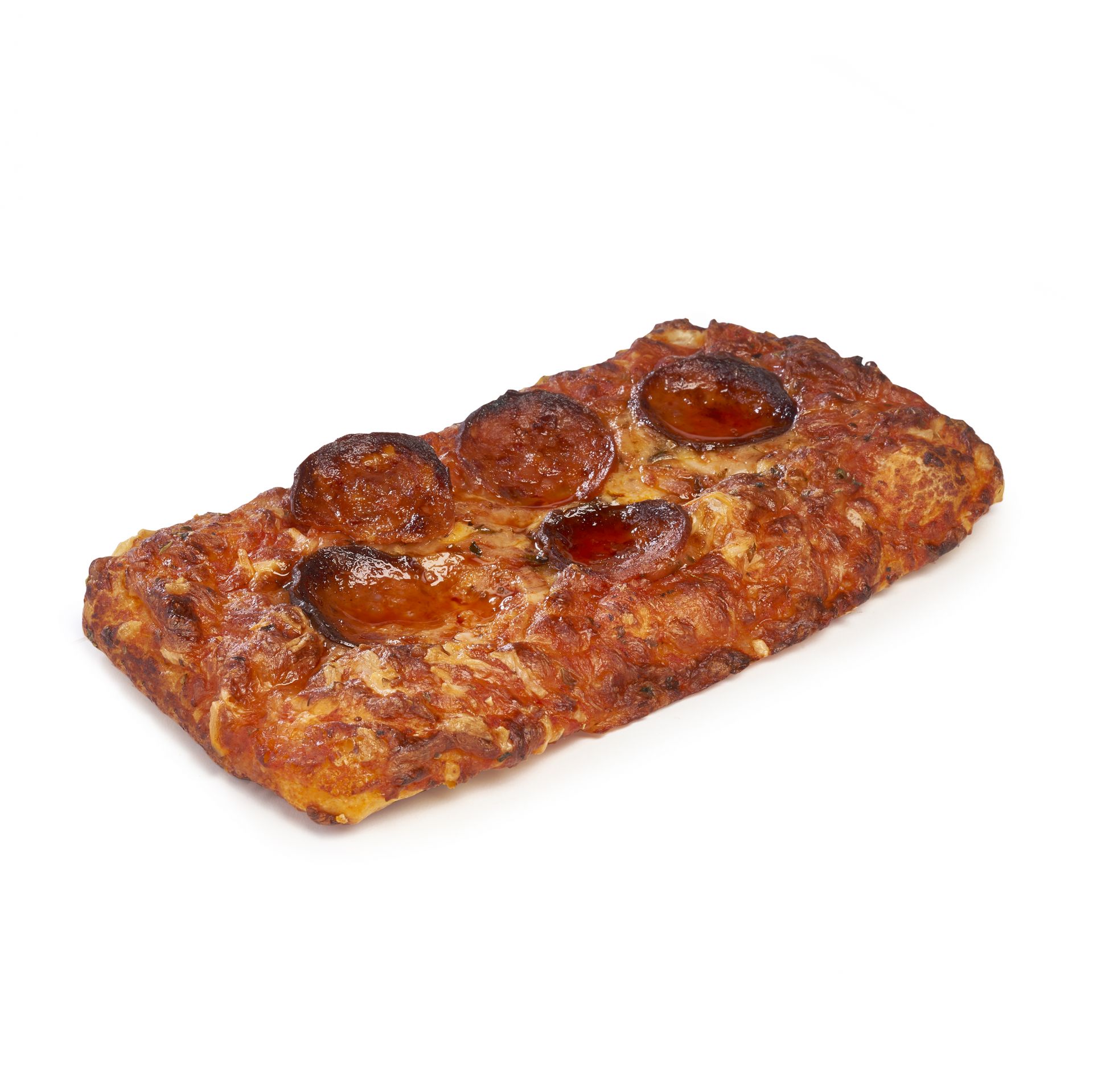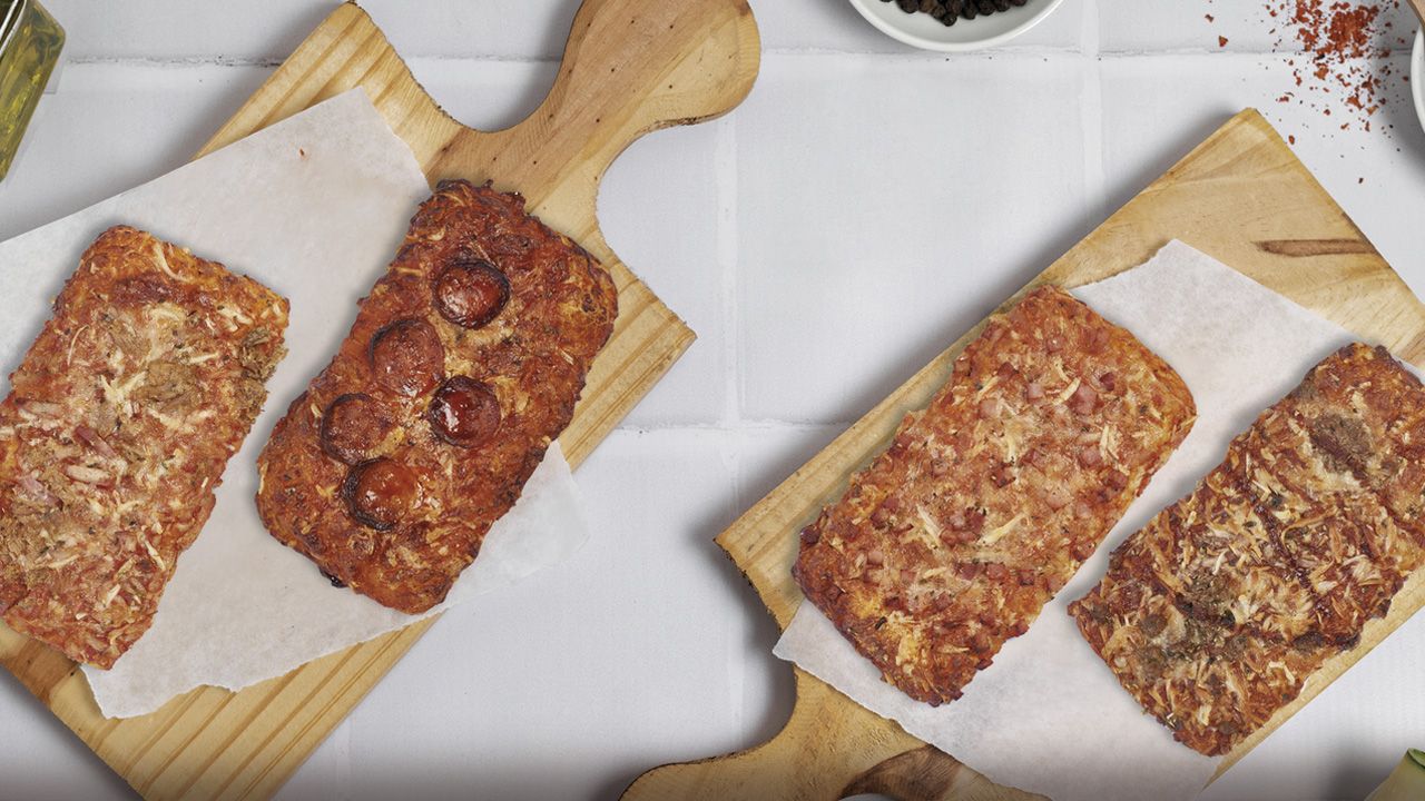 Base de pizza esponjosa y alveolada elaborada con harina, agua, y un toque de aceite de oliva virgen. Pizza sin bordes, los ingredientes ocupan toda su superficie, 100% sabor.