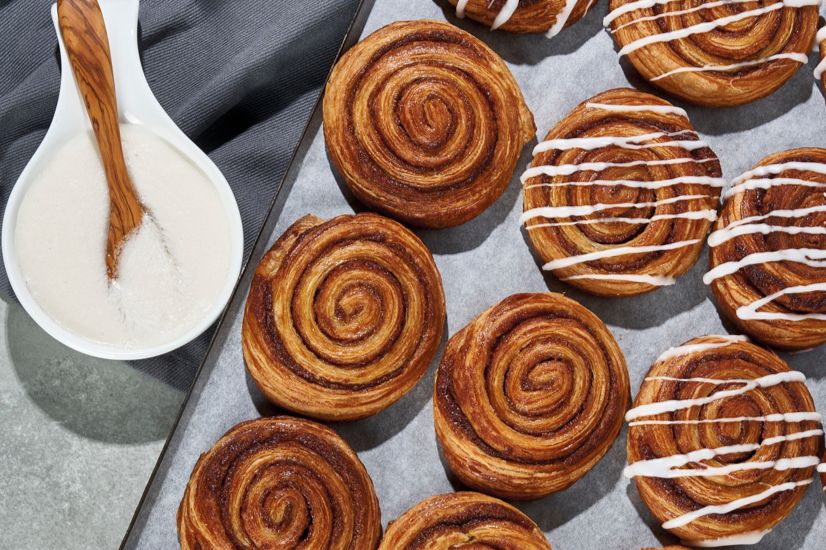 - Lámina de hojaldre de mantequilla. Una pieza versátil y con un alto porcentaje de mantequilla que es la base perfecta para preparar ricas piezas de bollería.