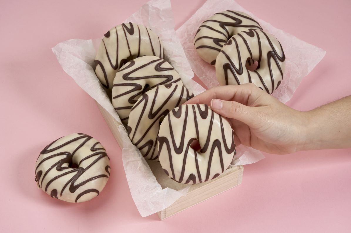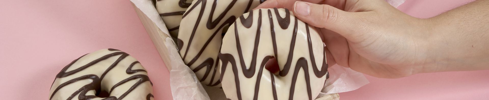 - Hoops White Rayado. Un bocado perfecto y suculento que llega en nuevo formato. Tiene un interior tierno y esponjoso y una cobertura sabor chocolate blanco y decorado con rayas de bombón.