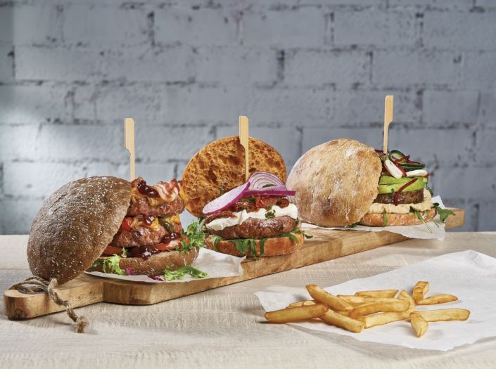 Convierte tus hamburguesas en unas hamburguesas premium, con nuestras nuevos sabores Baviera, Veggie y Tomate.