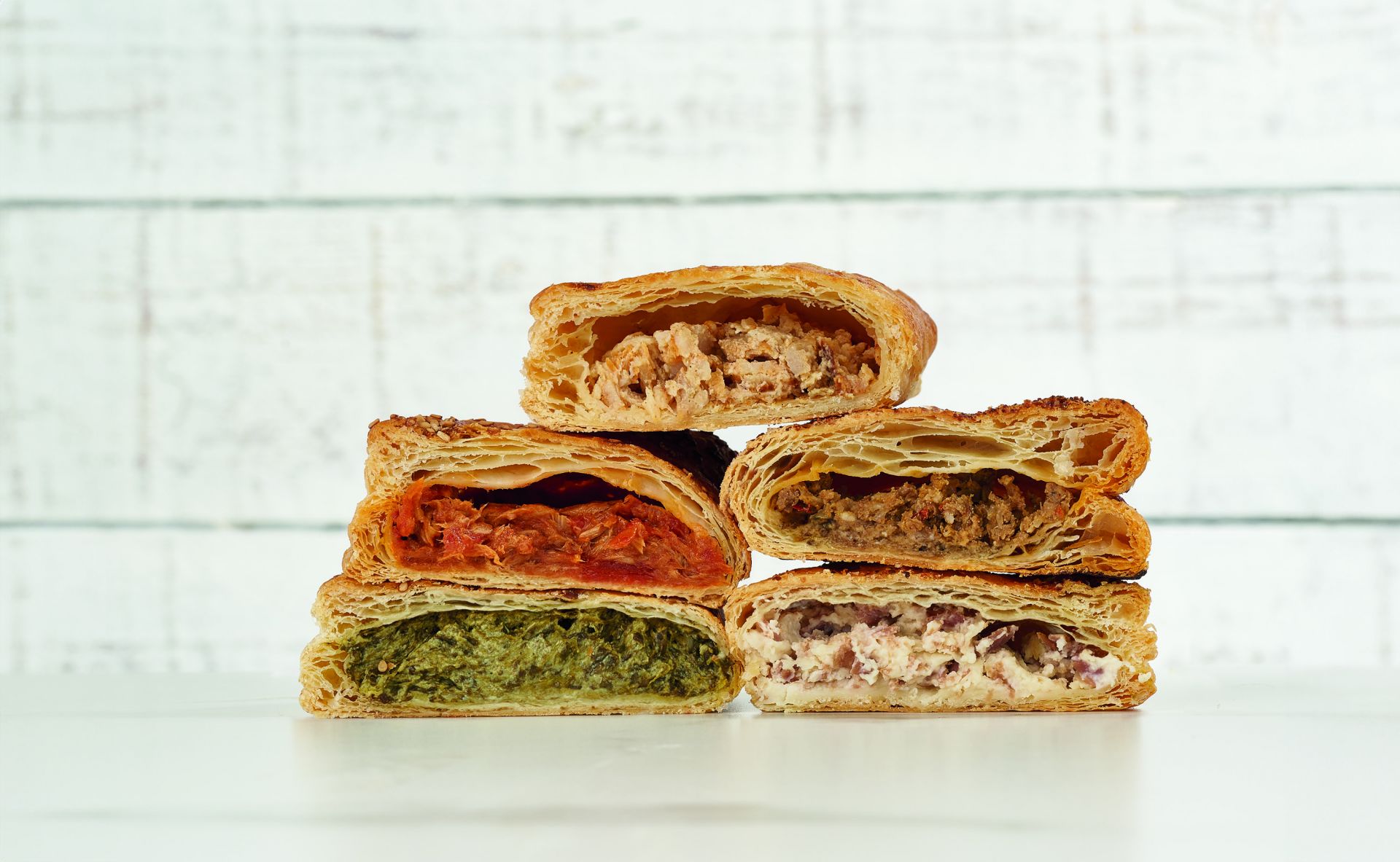 Filled with cooked minced beef (15.6%) that combines with fried onion (19.5%), pepper,and tomato to create a flavourful and slightly spiced filling with garlic,cumin, black pepper, cayenne, savory, nutmeg, and a blend of fine herbs.
