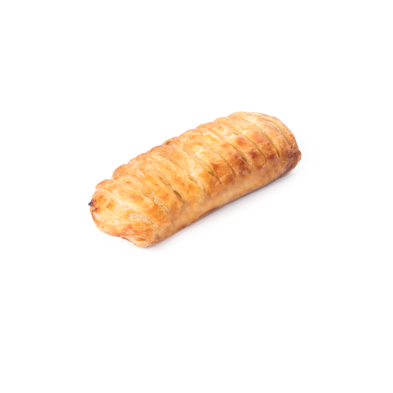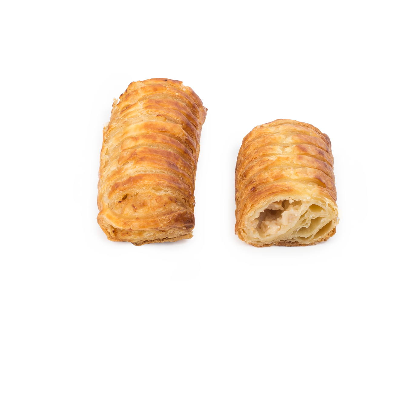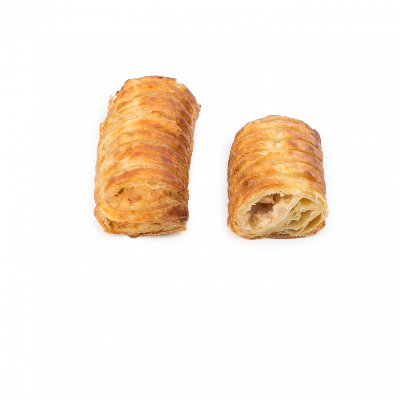 Delicioso snack salado relleno (30%) de pechuga de pollo con bechamel y potenciado por el delicioso toque de cebolla caramelizada. Su masa está elaborada con un toque de mantequilla. Ya pintado con huevo.