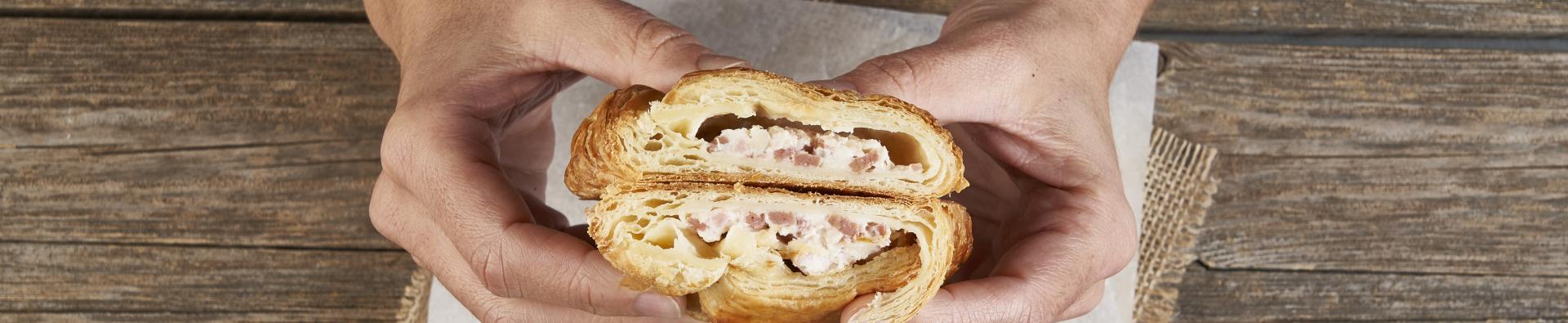 El relleno de la Trenza de Bacon, York y Queso destaca por ser especialmente generoso, y cuenta con crema de queso, bacon crujiente, dados de york y queso gouda hilado en su composición. Se puede servir de muchas maneras: templado, junto a una ensalada fresca… también en el supermercado, sea en bandeja para llevar o como reclamo en una vitrina expositora.