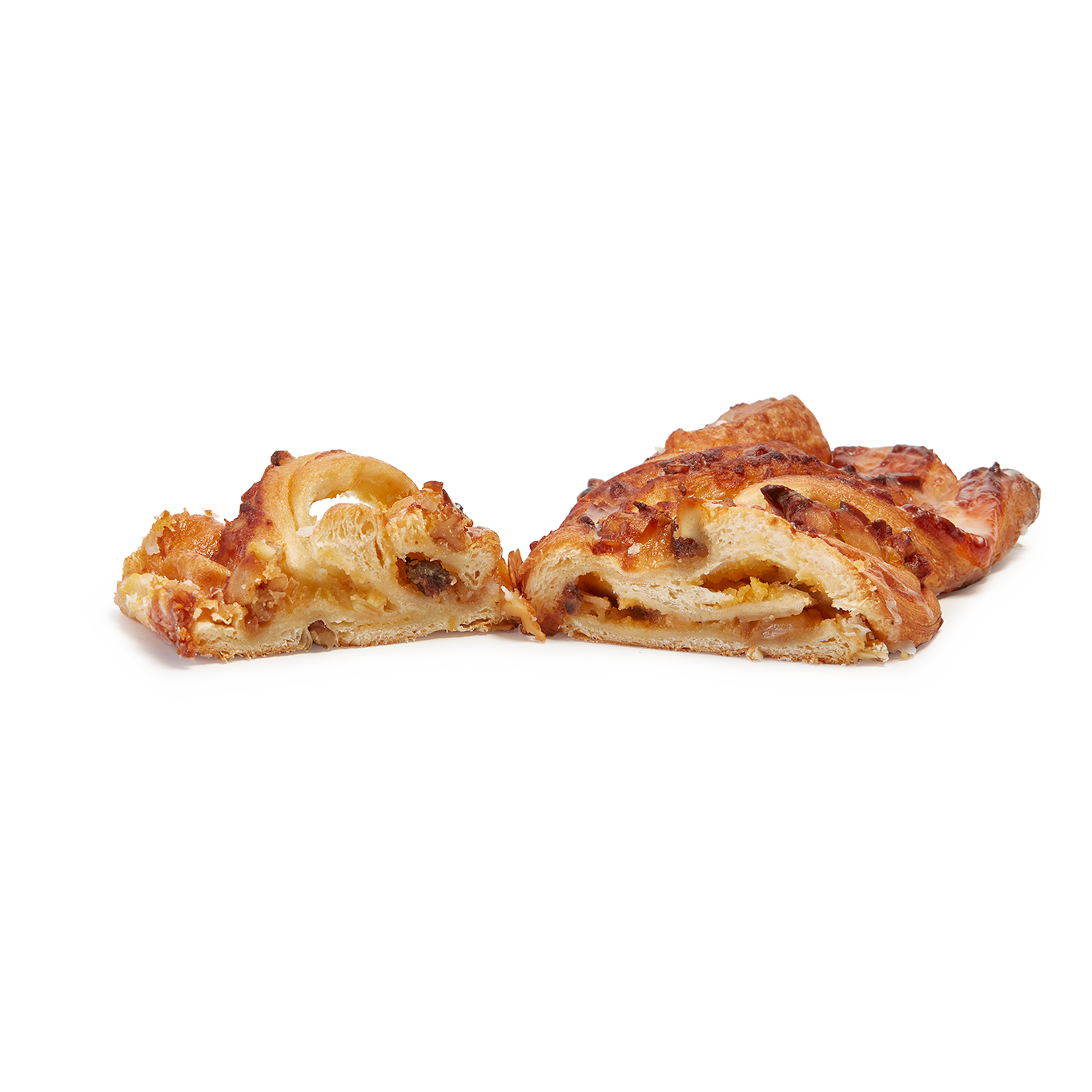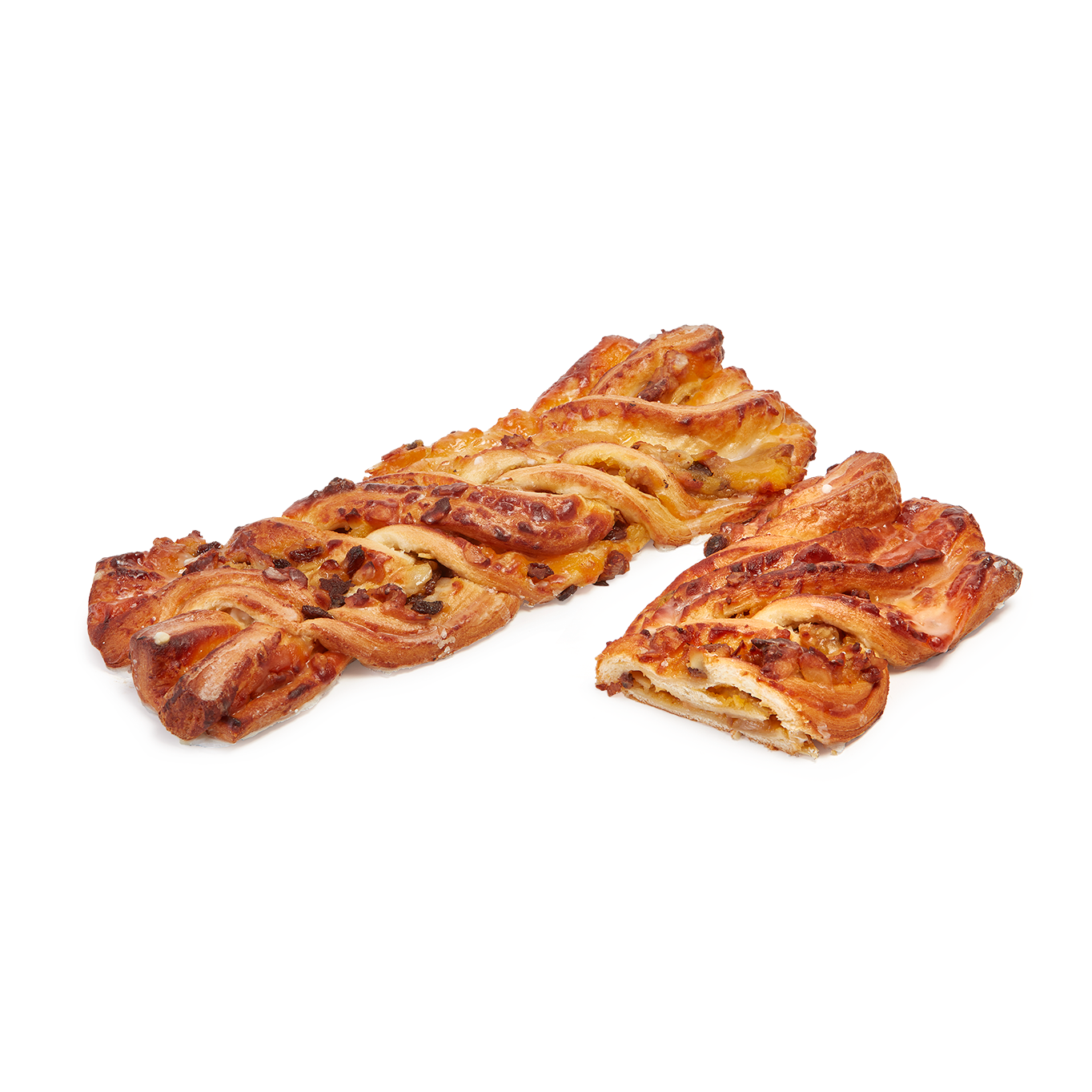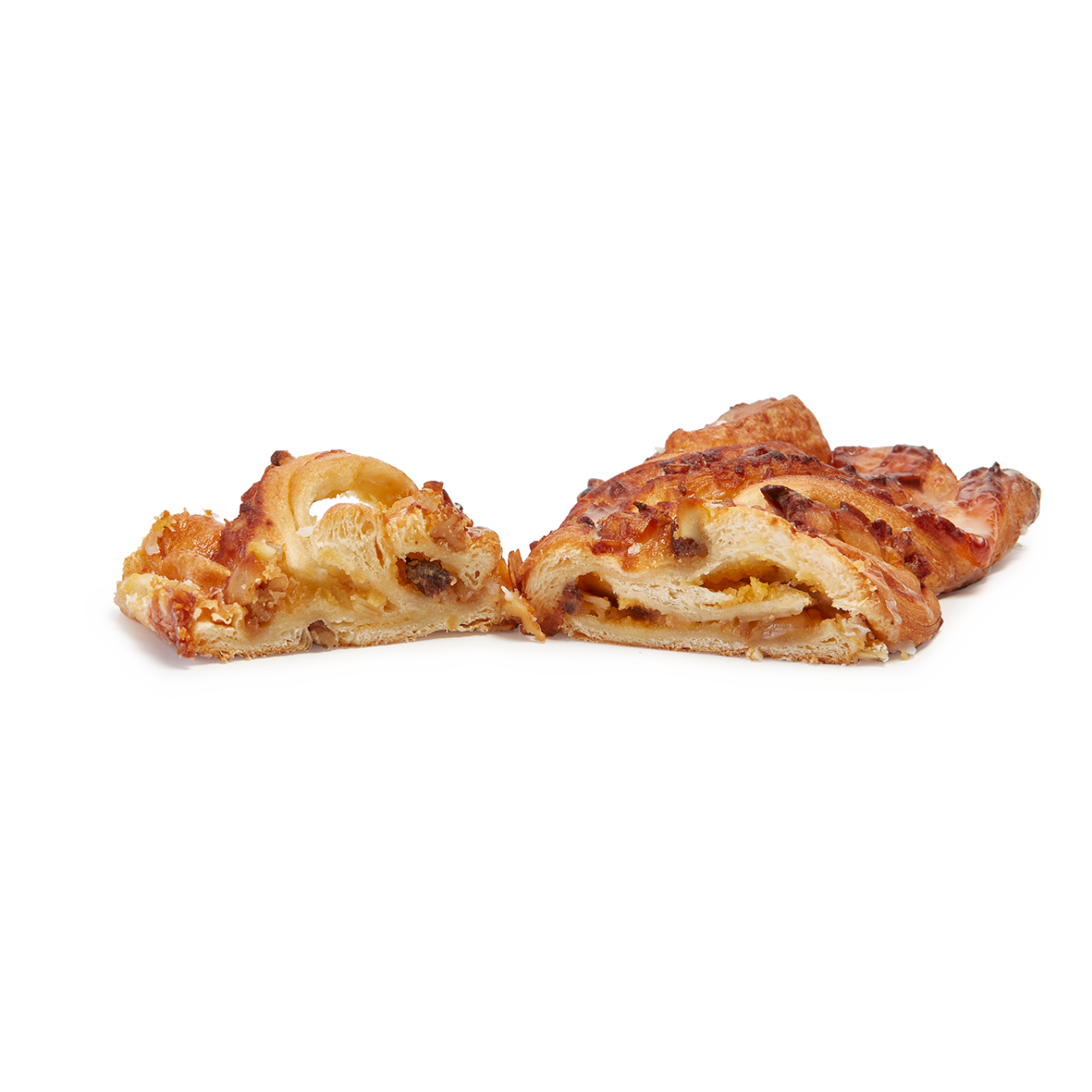 Hojaldre dorado y jugoso relleno de crema y yema, decorado con nueces, pasas y almendras para un acabado tradicional y muy atractivo. Trenzado a mano. Es una pieza clásica, tierna y equilibrada en sabor.