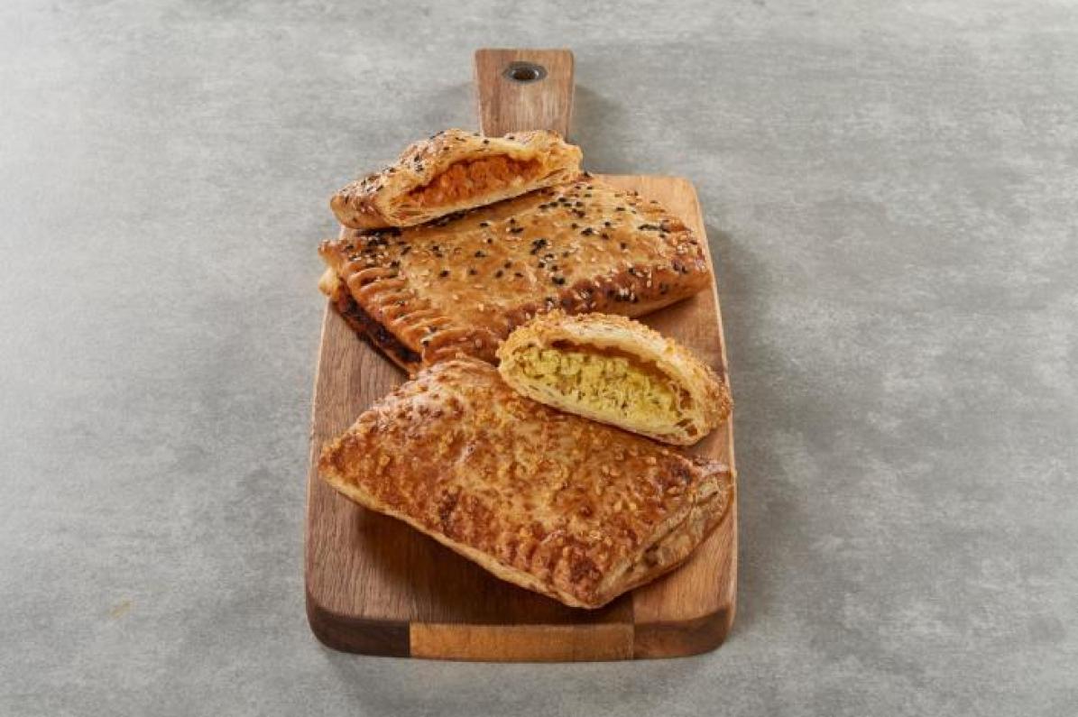 Una opción salada muy reconocible y de alta rotación elaborada con margarina y perfil “burger” de sabor familiar: ketchup, queso cheddar y relleno de carne picada de cerdo y bacon. Pintado con huevo y decorado con sésamo blanco y negro, este hojaldre crujiente se posiciona como una referencia segura para dinamizar la oferta salada y captar el consumo por impulso.
